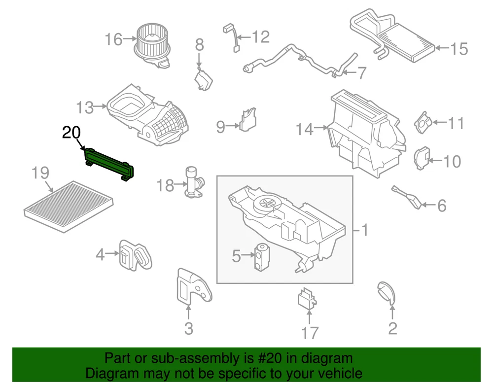 Hiller Parts Department Genuine Ford Cabin Air Filter Cover AE9Z-19B735-A Part can be found as # 20 in the diagram above Product Description Auto temp control. With dual zone ac. Specifications Brand Ford Manufacturer Part Number AE9Z-19B735-A SKU AE9Z-19B735-A Product Genuine Ford Cabin Air Filter Cover AE9Z-19B735-A ONLY PART REFERENCE #20 ON THE DIAGRAM IS INCLUDED Terms and Conditions Thank you for shopping with us. Please find our policies below. If you have any other questions, please don't hesitate to contact us. Shipping Terms In stock orders ship within 24 hours. Weekend orders will be processed the next business day. If a part is not in stock and must be ordered from the manufacturer, it usually takes 2-3 days to arrive to us and will be promptly shipped to you. Most of the orders are shipped complete within 2-3 business days. A few of the parts ordered from the manufacturer may take up to 5-6 business days to arrive and will shipped to you immediately. Depending upon location, ground shipments usually take 2-7 days. Your order may be shipped Overnight for an additional cost. Oversized shipments will be additional; you will be contacted prior to shipping for approval. We cannot guarantee transit times for ground and oversize orders. Shipping Carrier substitutions may be made at our determination in an attempt to reduce shipping cost to the customer. We do not ship internationally. In the unlikely event that a part has been placed on backorder or discontinued, we will do our best to try and find one for you as quickly as possible. We do not ship COD orders. Return Policy Contact us to arrange for any returns. A copy of the invoice will need to be included with the return. Parts must be resaleable and in the original packaging. 20% restocking fee may be charged, if the return item is used or not sellable. We cannot take back used parts. We cannot take back installed or tried parts. Electrical parts are not returnable. We do reserve the right to refuse and return any parts we find have been installed, are used or do not meet the above criteria. Return request need to be within 30 days of receipt. Cancellation Policy An order or a portion of an order may be cancelled up until the time it is shipped and no longer in our possession. Home • Newsletter Signup • Contact Us Copyright © 2024 Hiller Parts Department , All rights reserved. Solution by RevolutionParts, Inc. :: Design by OCDesignsOnline
