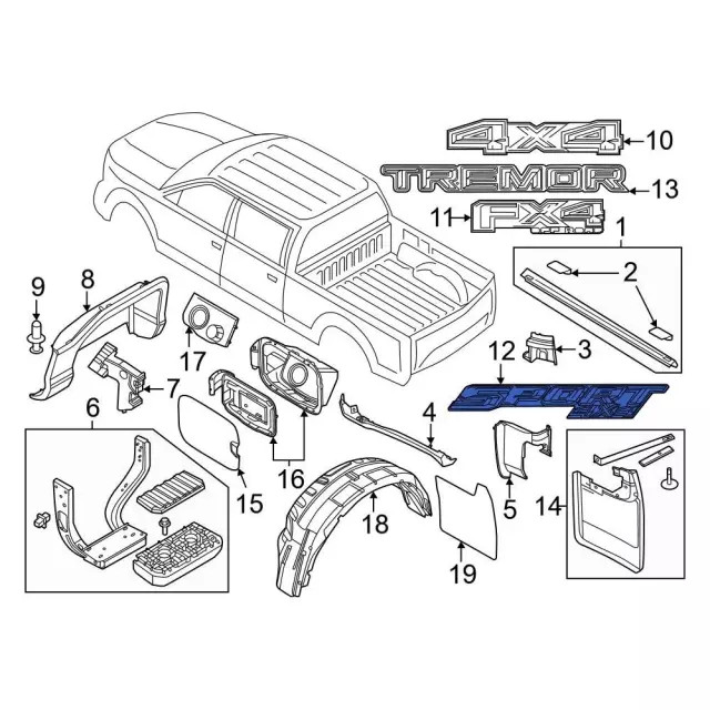 Hiller Parts Department Genuine Ford Decal ML3Z-9925622-F Part can be found as # 13 in the diagram above Product Description 6.75 foot box, sport. 8 foot box, body side, sport 4x4. 6.5 foot box, body side, sport 4x4. Specifications Brand Ford Manufacturer Part Number ML3Z-9925622-F SKU ML3Z-9925622-F Product Genuine Ford Decal ML3Z-9925622-F ONLY PART REFERENCE #13 ON THE DIAGRAM IS INCLUDED Terms and Conditions Thank you for shopping with us. Please find our policies below. If you have any other questions, please don't hesitate to contact us. Shipping Terms In stock orders ship within 24 hours. Weekend orders will be processed the next business day. If a part is not in stock and must be ordered from the manufacturer, it usually takes 2-3 days to arrive to us and will be promptly shipped to you. Most of the orders are shipped complete within 2-3 business days. A few of the parts ordered from the manufacturer may take up to 5-6 business days to arrive and will shipped to you immediately. Depending upon location, ground shipments usually take 2-7 days. Your order may be shipped Overnight for an additional cost. Oversized shipments will be additional; you will be contacted prior to shipping for approval. We cannot guarantee transit times for ground and oversize orders. Shipping Carrier substitutions may be made at our determination in an attempt to reduce shipping cost to the customer. In the unlikely event that a part has been placed on backorder or discontinued, we will do our best to try and find one for you as quickly as possible We do not ship COD orders. Return Policy Contact us to arrange for any returns. A copy of the invoice will need to be included with the return. Parts must be resaleable and in the original packaging. 20% restocking fee may be charged, if the return item is used or not sellable. We cannot take back used parts. We cannot take back installed or tried parts. Electrical parts are not returnable. We do reserve the right to refuse and return any parts we find have been installed, are used or do not meet the above criteria. Return request need to be within 30 days of receipt. Cancellation Policy An order or a portion of an order may be cancelled up until the time it is shipped and no longer in our possession. Home • Newsletter Signup • Contact Us Copyright © 2026 Hiller Parts Department , All rights reserved. Solution by RevolutionParts, Inc. :: Design by OCDesignsOnline