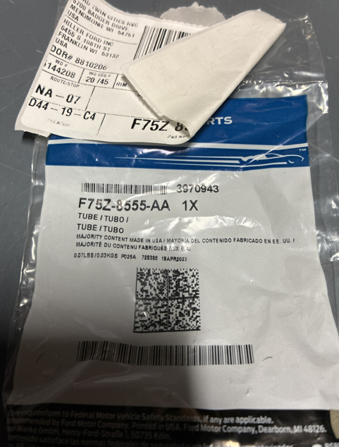 Hiller Parts Department Genuine Ford Tube Assembly F75Z-8555-AA Specifications Brand Ford Manufacturer Part Number F75Z-8555-AA SKU F75Z-8555-AA Product Genuine Ford Tube Assembly F75Z-8555-AA Replaces F65Z-8555-BA Terms and Conditions Thank you for shopping with us. Please find our policies below. If you have any other questions, please don't hesitate to contact us. Shipping Terms In stock orders ship within 24 hours. Weekend orders will be processed the next business day. If a part is not in stock and must be ordered from the manufacturer, it usually takes 2-3 days to arrive to us and will be promptly shipped to you. Most of the orders are shipped complete within 2-3 business days. A few of the parts ordered from the manufacturer may take up to 5-6 business days to arrive and will shipped to you immediately. Depending upon location, ground shipments usually take 2-7 days. Your order may be shipped Overnight for an additional cost. Oversized shipments will be additional; you will be contacted prior to shipping for approval. We cannot guarantee transit times for ground and oversize orders. Shipping Carrier substitutions may be made at our determination in an attempt to reduce shipping cost to the customer. In the unlikely event that a part has been placed on backorder or discontinued, we will do our best to try and find one for you as quickly as possible We do not ship COD orders. Return Policy Contact us to arrange for any returns. A copy of the invoice will need to be included with the return. Parts must be resaleable and in the original packaging. 20% restocking fee may be charged, if the return item is used or not sellable. We cannot take back used parts. We cannot take back installed or tried parts. Electrical parts are not returnable. We do reserve the right to refuse and return any parts we find have been installed, are used or do not meet the above criteria. Return request need to be within 30 days of receipt. Cancellation Policy An order or a portion of an order may be cancelled up until the time it is shipped and no longer in our possession. Home • Newsletter Signup • Contact Us Copyright © 2026 Hiller Parts Department , All rights reserved. Solution by RevolutionParts, Inc. :: Design by OCDesignsOnline