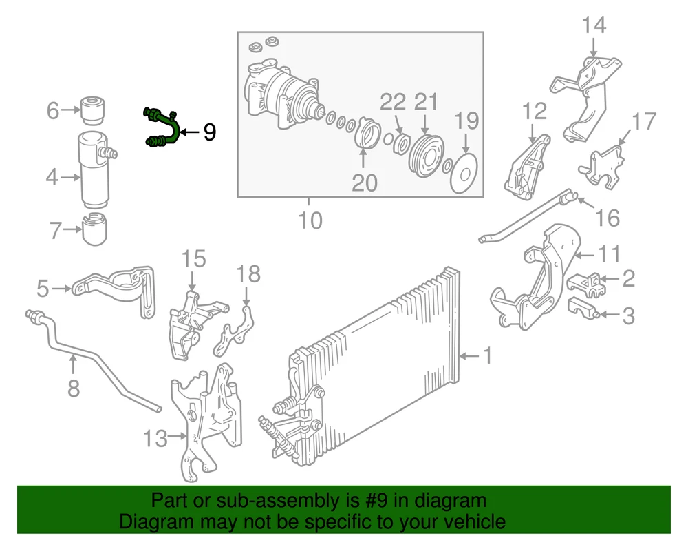 aaronchevrolet Genuine GM Air Conditioning Compressor and Condenser Hose Assembly 19169333 Part can be found as # 9 in the diagram above Product Description 5.0 & 5.7L. 5.7L, without rear ac. Ac compressor. Exc.Auxiliary A/C. Incl.Suction Hose. This GM Genuine Part is designed, engineered, and tested to rigorous standards and is backed by General Motors Specifications Brand GM Manufacturer Part Number 19169333 SKU 19169333 Product Genuine GM Air Conditioning Compressor and Condenser Hose Assembly 19169333 Replaces 15741045 ONLY PART REFERENCE #9 ON THE DIAGRAM IS INCLUDED WARNING : May cause cancer and reproductive harm. See www.P65Warnings.ca.gov for more info. Terms and Conditions Thank you for shopping with us. Please find our policies below. If you have any other questions, please don't hesitate to contact us. Shipping Terms If you are located in Alaska, Hawaii or Puerto Rico Please contact us via eBay email to discuss shipping cost In stock orders ship within 24 hours. Weekend orders will be processed the next business day. If a part is not in stock and must be ordered from the manufacturer, it usually takes 2-3 days to arrive to us and will be promptly shipped to you. Most of the orders are shipped complete within 2-3 business days. A few of the parts ordered from the manufacturer may take up to 5-6 business days to arrive and will shipped to you immediately. Depending upon location, ground shipments usually take 2-7 days. Your order may be shipped Overnight for an additional cost. Oversized shipments will be additional; you will be contacted prior to shipping for approval. We cannot guarantee transit times for ground and oversize orders. Shipping Carrier substitutions may be made at our determination in an attempt to reduce shipping cost to the customer. We do not ship internationally. In the unlikely event that a part has been placed on backorder or discontinued, we will do our best to try and find one for you as quickly as possible. We do not ship COD orders. Return Policy Contact us to arrange for any returns. A copy of the invoice will need to be included with the return. Parts must be resaleable and in the original packaging. We cannot take back used parts. We cannot take back installed or tried parts. Electrical parts are not returnable. We do reserve the right to refuse and return any parts we find have been installed, are used or do not meet the above criteria. Return request need to be within 30 days of receipt. Cancellation Policy An order or a portion of an order may be cancelled up until the time it is shipped and no longer in our possession. Home • Newsletter Signup • Contact Us Copyright © 2025 aaronchevrolet , All rights reserved. Solution by RevolutionParts, Inc. :: Design by OCDesignsOnline