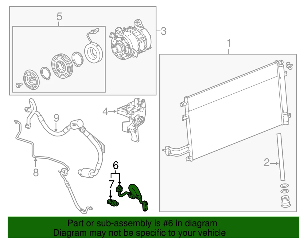 aaronchevrolet Genuine GM Air Conditioning Condenser Hose 84401906 Part can be found as # 6 in the diagram above Product Description Tahoe, Yukon, Escalade. R1234yf. Sierra, silverado. R134 refrigerant. 1234yf refrigerant. Condenser hose. Escalade ESV. 2nd design. Without eassist, with r-1234yf. Suburban. 2nd design. Yukon XL. 2nd design. Original equipment parts are designed to work with your GM vehicle safety systems -- aftermarket replacement parts may not meet the same OE safety regulations, depending on the part type Specifications Brand GM Manufacturer Part Number 84401906 SKU 84401906 Product Genuine GM Air Conditioning Condenser Hose 84401906 Replaces 23220458, 23272783, 23357011 ONLY PART REFERENCE #6 ON THE DIAGRAM IS INCLUDED WARNING : May cause cancer and reproductive harm. See www.P65Warnings.ca.gov for more info. Terms and Conditions Thank you for shopping with us. Please find our policies below. If you have any other questions, please don't hesitate to contact us. Shipping Terms If you are located in Alaska, Hawaii or Puerto Rico Please contact us via eBay email to discuss shipping cost In stock orders ship within 24 hours. Weekend orders will be processed the next business day. If a part is not in stock and must be ordered from the manufacturer, it usually takes 2-3 days to arrive to us and will be promptly shipped to you. Most of the orders are shipped complete within 2-3 business days. A few of the parts ordered from the manufacturer may take up to 5-6 business days to arrive and will shipped to you immediately. Depending upon location, ground shipments usually take 2-7 days. Your order may be shipped Overnight for an additional cost. Oversized shipments will be additional; you will be contacted prior to shipping for approval. We cannot guarantee transit times for ground and oversize orders. Shipping Carrier substitutions may be made at our determination in an attempt to reduce shipping cost to the customer. We do not ship internationally. In the unlikely event that a part has been placed on backorder or discontinued, we will do our best to try and find one for you as quickly as possible. We do not ship COD orders. Return Policy Contact us to arrange for any returns. A copy of the invoice will need to be included with the return. Parts must be resaleable and in the original packaging. We cannot take back used parts. We cannot take back installed or tried parts. Electrical parts are not returnable. We do reserve the right to refuse and return any parts we find have been installed, are used or do not meet the above criteria. Return request need to be within 30 days of receipt. Cancellation Policy An order or a portion of an order may be cancelled up until the time it is shipped and no longer in our possession. Home • Newsletter Signup • Contact Us Copyright © 2025 aaronchevrolet , All rights reserved. Solution by RevolutionParts, Inc. :: Design by OCDesignsOnline