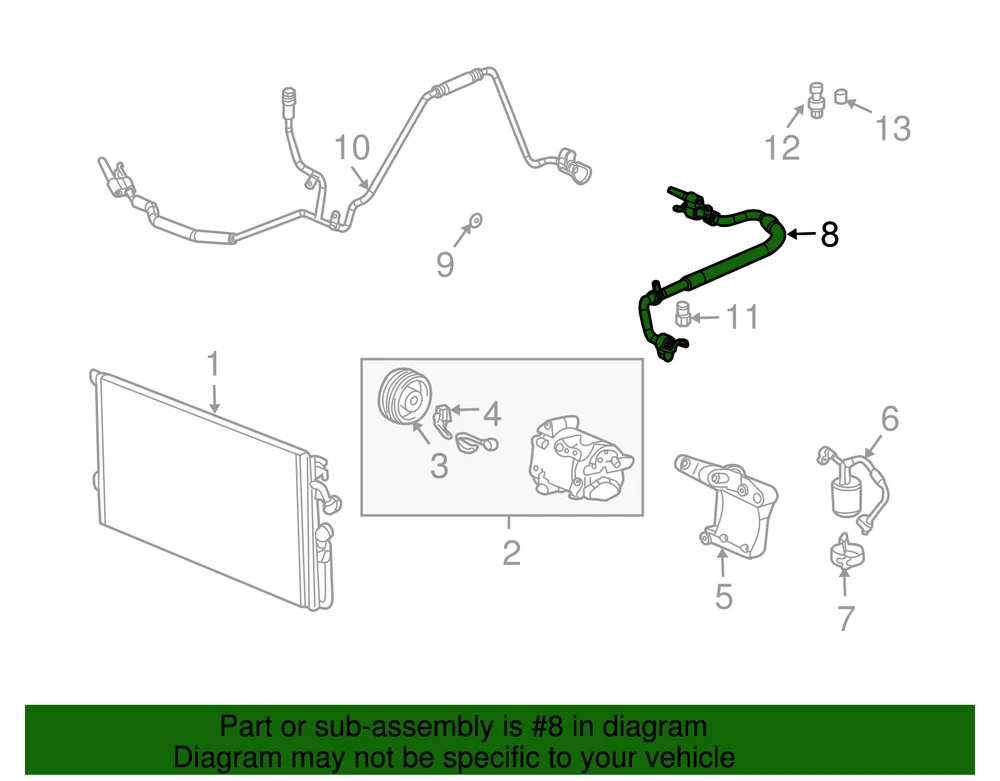 VRAY-GMC Genuine GM Air Conditioning Refrigerant Liquid Hose 10356825 Part can be found as # 8 in the diagram above Product Description 3.5L. Repair leaking A/C system, restore A/C function Specifications Brand GM Manufacturer Part Number 10356825 SKU 10356825 Product Genuine GM Air Conditioning Refrigerant Liquid Hose 10356825 Replaces 22722034 ONLY PART REFERENCE #8 ON THE DIAGRAM IS INCLUDED WARNING : May cause cancer and reproductive harm. See www.P65Warnings.ca.gov for more info. Terms and Conditions Thank you for shopping with us. Please find our policies below. If you have any other questions, please don't hesitate to contact us. Shipping Terms In stock orders ship within 24 hours. Weekend orders will be processed the next business day. If a part is not in stock and must be ordered from the manufacturer, it usually takes 2-3 days to arrive to us and will be promptly shipped to you. Most of the orders are shipped complete within 2-3 business days. A few of the parts ordered from the manufacturer may take up to 5-6 business days to arrive and will shipped to you immediately. Depending upon location, ground shipments usually take 2-7 days. Your order may be shipped Overnight for an additional cost. Oversized shipments will be additional; you will be contacted prior to shipping for approval. We cannot guarantee transit times for ground and oversize orders. Shipping Carrier substitutions may be made at our determination in an attempt to reduce shipping cost to the customer. We do not ship internationally. In the unlikely event that a part has been placed on backorder or discontinued, we will do our best to try and find one for you as quickly as possible. We do not ship COD orders. Return Policy Contact us to arrange for any returns. A copy of the invoice will need to be included with the return. Parts must be resaleable and in the original packaging. We cannot take back used parts. We cannot take back installed or tried parts. Electrical parts are not returnable. We do reserve the right to refuse and return any parts we find have been installed, are used or do not meet the above criteria. Return request need to be within 30 days of receipt. Cancellation Policy An order or a portion of an order may be cancelled up until the time it is shipped and no longer in our possession. Home • Newsletter Signup • Contact Us Copyright © 2024 VRAY-GMC , All rights reserved. Solution by RevolutionParts, Inc. :: Design by OCDesignsOnline