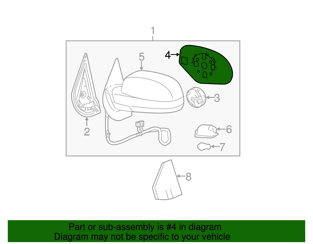 aaronchevrolet Genuine GM Driver Side Door Mirror Glass 25829662 Part can be found as # 4 in the diagram above Product Description With power folding, chevrolet & gmc. Cadillac. , with power folding, with turn signal. Helps you see areas behind and to the sides of your vehicle This GM Genuine Part is designed, engineered, and tested to rigorous standards and is backed by General Motors Specifications Brand GM Manufacturer Part Number 25829662 SKU 25829662 Product Genuine GM Driver Side Door Mirror Glass 25829662 ONLY PART REFERENCE #4 ON THE DIAGRAM IS INCLUDED WARNING : May cause cancer and reproductive harm. See www.P65Warnings.ca.gov for more info. Terms and Conditions Thank you for shopping with us. Please find our policies below. If you have any other questions, please don't hesitate to contact us. Shipping Terms If you are located in Alaska, Hawaii or Puerto Rico Please contact us via eBay email to discuss shipping cost In stock orders ship within 24 hours. Weekend orders will be processed the next business day. If a part is not in stock and must be ordered from the manufacturer, it usually takes 2-3 days to arrive to us and will be promptly shipped to you. Most of the orders are shipped complete within 2-3 business days. A few of the parts ordered from the manufacturer may take up to 5-6 business days to arrive and will shipped to you immediately. Depending upon location, ground shipments usually take 2-7 days. Your order may be shipped Overnight for an additional cost. Oversized shipments will be additional; you will be contacted prior to shipping for approval. We cannot guarantee transit times for ground and oversize orders. Shipping Carrier substitutions may be made at our determination in an attempt to reduce shipping cost to the customer. We do not ship internationally. In the unlikely event that a part has been placed on backorder or discontinued, we will do our best to try and find one for you as quickly as possible. We do not ship COD orders. Return Policy Contact us to arrange for any returns. A copy of the invoice will need to be included with the return. Parts must be resaleable and in the original packaging. We cannot take back used parts. We cannot take back installed or tried parts. Electrical parts are not returnable. We do reserve the right to refuse and return any parts we find have been installed, are used or do not meet the above criteria. Return request need to be within 30 days of receipt. Cancellation Policy An order or a portion of an order may be cancelled up until the time it is shipped and no longer in our possession. Home • Newsletter Signup • Contact Us Copyright © 2025 aaronchevrolet , All rights reserved. Solution by RevolutionParts, Inc. :: Design by OCDesignsOnline