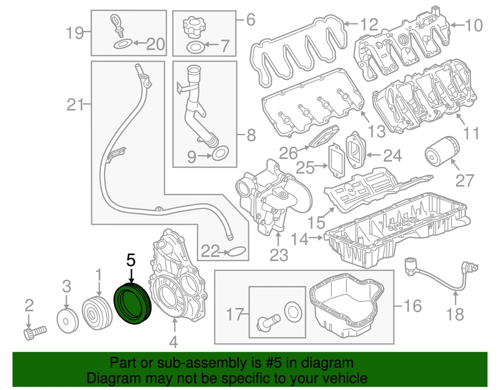 aaronchevrolet Genuine GM Engine Timing Cover Gasket 94011695 Part can be found as # 5 in the diagram above Product Description Oil Pressure Relief Valve to Timing Cover. Specifications Brand GM Manufacturer Part Number 94011695 SKU 94011695 Product Genuine GM Engine Timing Cover Gasket 94011695 ONLY PART REFERENCE #5 ON THE DIAGRAM IS INCLUDED WARNING : May cause cancer and reproductive harm. See www.P65Warnings.ca.gov for more info. Terms and Conditions Thank you for shopping with us. Please find our policies below. If you have any other questions, please don't hesitate to contact us. Shipping Terms If you are located in Alaska, Hawaii or Puerto Rico Please contact us via eBay email to discuss shipping cost In stock orders ship within 24 hours. Weekend orders will be processed the next business day. If a part is not in stock and must be ordered from the manufacturer, it usually takes 2-3 days to arrive to us and will be promptly shipped to you. Most of the orders are shipped complete within 2-3 business days. A few of the parts ordered from the manufacturer may take up to 5-6 business days to arrive and will shipped to you immediately. Depending upon location, ground shipments usually take 2-7 days. Your order may be shipped Overnight for an additional cost. Oversized shipments will be additional; you will be contacted prior to shipping for approval. We cannot guarantee transit times for ground and oversize orders. Shipping Carrier substitutions may be made at our determination in an attempt to reduce shipping cost to the customer. We do not ship internationally. In the unlikely event that a part has been placed on backorder or discontinued, we will do our best to try and find one for you as quickly as possible. We do not ship COD orders. Return Policy Contact us to arrange for any returns. A copy of the invoice will need to be included with the return. Parts must be resaleable and in the original packaging. We cannot take back used parts. We cannot take back installed or tried parts. Electrical parts are not returnable. We do reserve the right to refuse and return any parts we find have been installed, are used or do not meet the above criteria. Return request need to be within 30 days of receipt. Cancellation Policy An order or a portion of an order may be cancelled up until the time it is shipped and no longer in our possession. Home • Newsletter Signup • Contact Us Copyright © 2025 aaronchevrolet , All rights reserved. Solution by RevolutionParts, Inc. :: Design by OCDesignsOnline