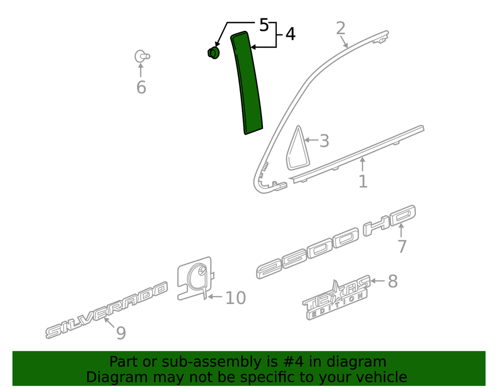 Genuine OEM: Yes Make: Chevrolet Year: 2020 2021 2022 2023 2024 Model: Silverado 2500 HD Silverado 3500 HD SKU: 84987909 Replaces Part Number: 84184152, 84692170, 84864938, 84948815, 85665185 Manufacturer Warranty: 1 Year Manufacturer Part Number: 84987909 Parts Included: ONLY PART REFERENCE #4 ON THE DIAGRAM IS INCLUDED Brand: GM Fitment Type: Direct Replacement