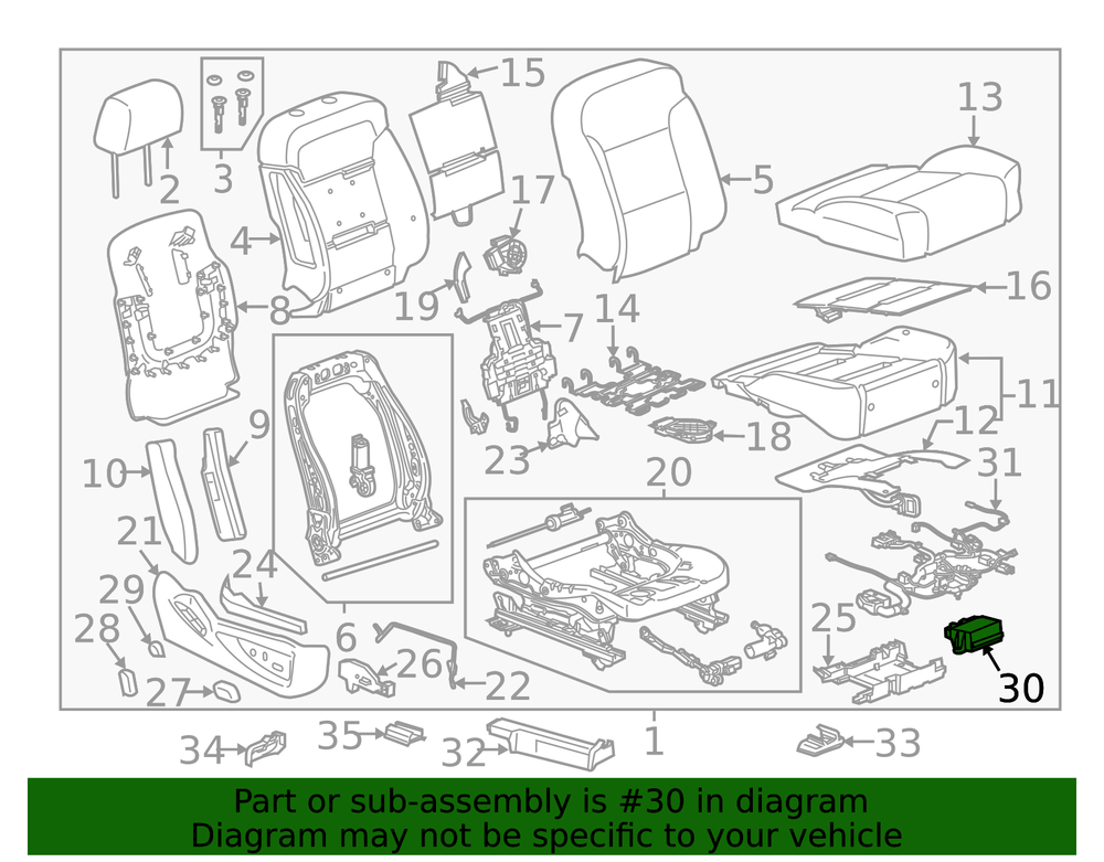 World Parts Direct Genuine GM Front Seat Heater Control Module 13510339 Part can be found as # 30 in the diagram above Product Description GM Genuine Parts Front Seat Heater Control Module (Part Number: 13510339 ) is a control module that manages seat heating and ventilation functions for front seats. Function: Receives inputs from seat heater/vent switches and controls heating elements and fan circuitry for seat comfort. Application: Used on select Silverado and Sierra bucket-seat applications without dual-mode capability. OEM repair quality: Designed and tested to GM standards for reliable performance in collision repairs. Also known as: Module World Parts Direct is a U.S. company offering OEM parts, competitive pricing, a compatibility guarantee, and knowledgeable technical support. Specifications Brand GM Manufacturer Part Number 13510339 SKU 13510339 Product Genuine GM Front Seat Heater Control Module 13510339 Replaces 13506705, 13509388 ONLY PART REFERENCE #30 ON THE DIAGRAM IS INCLUDED About Us WorldPartsDirect is a small, Texas based business located in the Dallas metroplex. There are about twenty of us that work tirelessly to get you the genuine, OEM parts you need at unbeatable prices. We pride ourselves in top quality customer service and our commitment to be the business we would want to shop with. We have one of the largest inventory networks in the country along with some of the most aggressive discounts. We love cars, and we love what we do! We hope you will love shopping with us , and we always welcome feedback on how we can make your shopping experience even better. Terms and Conditions Compatibility Guarantee (optional free service): Applies when you include your VIN during or before checkout. Simply click "Message to Seller" during checkout and include your VIN with any relevant details (ex: driver/ passenger side). Our fitment experts will confirm compatibility before shipping. If we determine that you purchased an incompatible part, we will correct your order if possible. If we cannot correct your order, we will notify you of the issue (ex: discontinued item) and give you the option to cancel. Part Authenticity and Warranty Guarantee: When you order from us, we guarantee that you will receive a genuine, OEM part. We do not stock anything aftermarket! Our parts are warrantied nationwide for 1 year at every Mopar (Chrysler/Dodge/Jeep/Ram) or General Motors (Chevrolet/Buick/GM/GMC) dealer in the country, depending on the brand of part you ordered. We are able to provide documentation that proves the validity of your purchase from our licensed dealership at anytime upon request. This documentation can be used to redeem this warranty if needed at the dealership of your choice and at no cost to you. Return Policy All of our products can be returned within 30 days. Please open a request for any of these reasons: Doesn't Fit Changed My Mind Found a Better Price Just Didn't Like it Ordered by Mistake The reason you pick has no impact on your refund amount, but it has a big impact on us as a seller. Choosing other reasons may delay the refund per an internal investigation and potential eBay appeal. If a part fails at anytime during the 1 year warranty period, any licensed new car dealership in the country that carries your brand of vehicle will replace the part for free. Simply request our dealer invoice for the part and provide it to your preferred dealer along with the defective part. Home • Newsletter Signup • Contact Us Copyright © 2026 World Parts Direct , All rights reserved. Solution by RevolutionParts, Inc. :: Design by OCDesignsOnline
