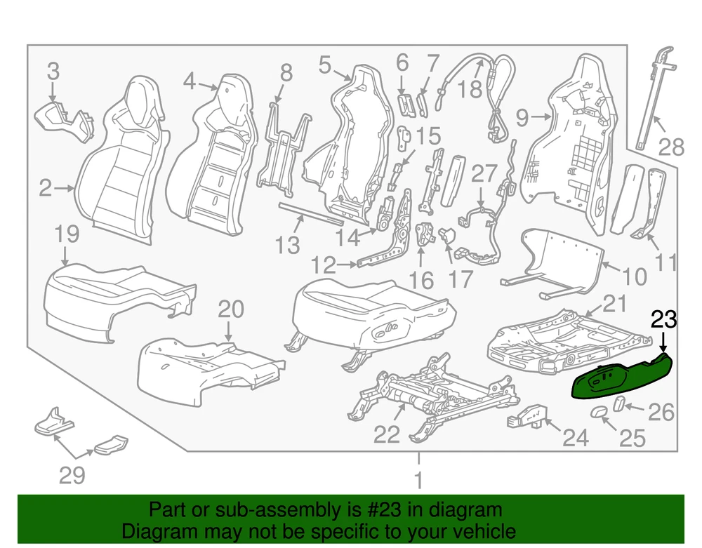 World Parts Direct Genuine GM Jet Black Driver Seat Cushion Outer Finish Cover 23440274 Part can be found as # 23 in the diagram above Product Description With heated. Helps define the appearance of your vehicle's seat frame trim This GM Genuine Part is designed, engineered, and tested to rigorous standards and is backed by General Motors Specifications Brand GM Manufacturer Part Number 23440274 SKU 23440274 Product Genuine GM Jet Black Driver Seat Cushion Outer Finish Cover 23440274 ONLY PART REFERENCE #23 ON THE DIAGRAM IS INCLUDED About Us WorldPartsDirect is a small, Texas based business located in the Dallas metroplex. There are about twenty of us that work tirelessly to get you the genuine, OEM parts you need at unbeatable prices. We pride ourselves in top quality customer service and our commitment to be the business we would want to shop with. We have one of the largest inventory networks in the country along with some of the most aggressive discounts. We love cars, and we love what we do! We hope you will love shopping with us , and we always welcome feedback on how we can make your shopping experience even better. Terms and Conditions Compatibility Guarantee (optional free service): Applies when you include your VIN during or before checkout. Simply click "Message to Seller" during checkout and include your VIN with any relevant details (ex: driver/ passenger side). Our fitment experts will confirm compatibility before shipping. If we determine that you purchased an incompatible part, we will correct your order if possible. If we cannot correct your order, we will notify you of the issue (ex: discontinued item) and give you the option to cancel. Part Authenticity and Warranty Guarantee: When you order from us, we guarantee that you will receive a genuine, OEM part. We do not stock anything aftermarket! Our parts are warrantied nationwide for 1 year at every Mopar (Chrysler/Dodge/Jeep/Ram) or General Motors (Chevrolet/Buick/GM/GMC) dealer in the country, depending on the brand of part you ordered. We are able to provide documentation that proves the validity of your purchase from our licensed dealership at anytime upon request. This documentation can be used to redeem this warranty if needed at the dealership of your choice and at no cost to you. Return Policy All of our products can be returned within 30 days. Please open a request for any of these reasons: Doesn't Fit Changed My Mind Found a Better Price Just Didn't Like it Ordered by Mistake The reason you pick has no impact on your refund amount, but it has a big impact on us as a seller. Choosing other reasons may delay the refund per an internal investigation and potential eBay appeal. If a part fails at anytime during the 1 year warranty period, any licensed new car dealership in the country that carries your brand of vehicle will replace the part for free. Simply request our dealer invoice for the part and provide it to your preferred dealer along with the defective part. Home • Newsletter Signup • Contact Us Copyright © 2024 World Parts Direct , All rights reserved. Solution by RevolutionParts, Inc. :: Design by OCDesignsOnline
