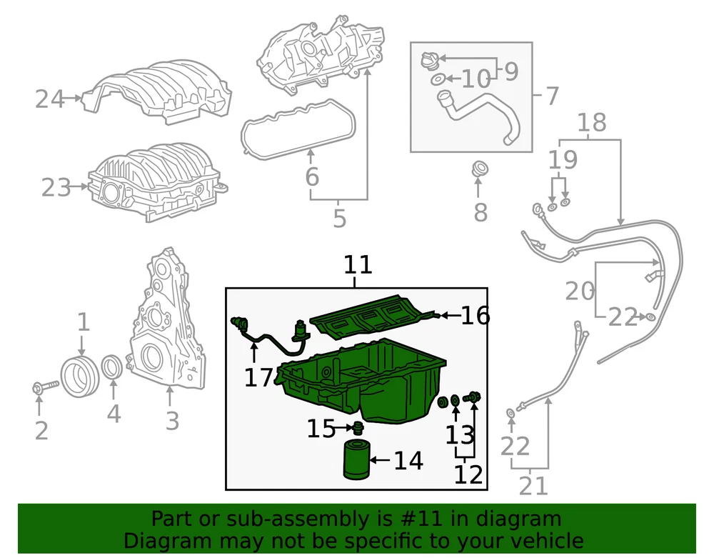 aaronchevrolet Genuine GM Oil Pan 12732269 Part can be found as # 11 in the diagram above Product Description Express, savana. Sierra, silverado. Express 2500. Express 3500. Savana 3500. Savana 2500. 2018-24 4.3L. Specifications Brand GM Manufacturer Part Number 12732269 SKU 12732269 Product Genuine GM Oil Pan 12732269 Replaces 12689454, 12707239 ONLY PART REFERENCE #11 ON THE DIAGRAM IS INCLUDED WARNING : May cause cancer and reproductive harm. See www.P65Warnings.ca.gov for more info. Terms and Conditions Thank you for shopping with us. Please find our policies below. If you have any other questions, please don't hesitate to contact us. Shipping Terms If you are located in Alaska, Hawaii or Puerto Rico Please contact us via eBay email to discuss shipping cost In stock orders ship within 24 hours. Weekend orders will be processed the next business day. If a part is not in stock and must be ordered from the manufacturer, it usually takes 2-3 days to arrive to us and will be promptly shipped to you. Most of the orders are shipped complete within 2-3 business days. A few of the parts ordered from the manufacturer may take up to 5-6 business days to arrive and will shipped to you immediately. Depending upon location, ground shipments usually take 2-7 days. Your order may be shipped Overnight for an additional cost. Oversized shipments will be additional; you will be contacted prior to shipping for approval. We cannot guarantee transit times for ground and oversize orders. Shipping Carrier substitutions may be made at our determination in an attempt to reduce shipping cost to the customer. We do not ship internationally. In the unlikely event that a part has been placed on backorder or discontinued, we will do our best to try and find one for you as quickly as possible. We do not ship COD orders. Return Policy Contact us to arrange for any returns. A copy of the invoice will need to be included with the return. Parts must be resaleable and in the original packaging. We cannot take back used parts. We cannot take back installed or tried parts. Electrical parts are not returnable. We do reserve the right to refuse and return any parts we find have been installed, are used or do not meet the above criteria. Return request need to be within 30 days of receipt. Cancellation Policy An order or a portion of an order may be cancelled up until the time it is shipped and no longer in our possession. Home • Newsletter Signup • Contact Us Copyright © 2024 aaronchevrolet , All rights reserved. Solution by RevolutionParts, Inc. :: Design by OCDesignsOnline