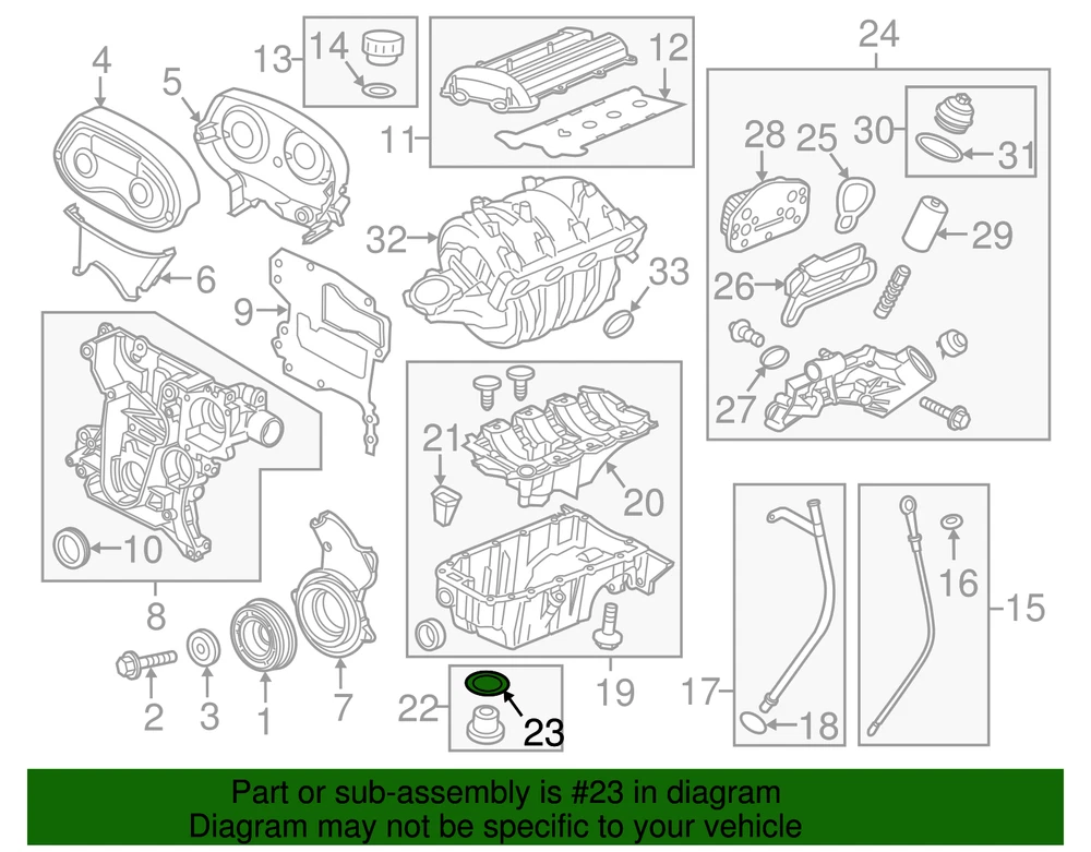 aaronchevrolet Genuine GM Oil Pan Drain Plug Seal 55569307 Part can be found as # 23 in the diagram above Product Description 1.4L turbo. Without high output. 1.8L, all. 1.8L, auto trans. This GM Genuine Part is designed, engineered, and tested to rigorous standards and is backed by General Motors Specifications Brand GM Manufacturer Part Number 55569307 SKU 55569307 Product Genuine GM Oil Pan Drain Plug Seal 55569307 ONLY PART REFERENCE #23 ON THE DIAGRAM IS INCLUDED WARNING : May cause cancer and reproductive harm. See www.P65Warnings.ca.gov for more info. Terms and Conditions Thank you for shopping with us. Please find our policies below. If you have any other questions, please don't hesitate to contact us. Shipping Terms If you are located in Alaska, Hawaii or Puerto Rico Please contact us via eBay email to discuss shipping cost In stock orders ship within 24 hours. Weekend orders will be processed the next business day. If a part is not in stock and must be ordered from the manufacturer, it usually takes 2-3 days to arrive to us and will be promptly shipped to you. Most of the orders are shipped complete within 2-3 business days. A few of the parts ordered from the manufacturer may take up to 5-6 business days to arrive and will shipped to you immediately. Depending upon location, ground shipments usually take 2-7 days. Your order may be shipped Overnight for an additional cost. Oversized shipments will be additional; you will be contacted prior to shipping for approval. We cannot guarantee transit times for ground and oversize orders. Shipping Carrier substitutions may be made at our determination in an attempt to reduce shipping cost to the customer. We do not ship internationally. In the unlikely event that a part has been placed on backorder or discontinued, we will do our best to try and find one for you as quickly as possible. We do not ship COD orders. Return Policy Contact us to arrange for any returns. A copy of the invoice will need to be included with the return. Parts must be resaleable and in the original packaging. We cannot take back used parts. We cannot take back installed or tried parts. Electrical parts are not returnable. We do reserve the right to refuse and return any parts we find have been installed, are used or do not meet the above criteria. Return request need to be within 30 days of receipt. Cancellation Policy An order or a portion of an order may be cancelled up until the time it is shipped and no longer in our possession. Home • Newsletter Signup • Contact Us Copyright © 2025 aaronchevrolet , All rights reserved. Solution by RevolutionParts, Inc. :: Design by OCDesignsOnline