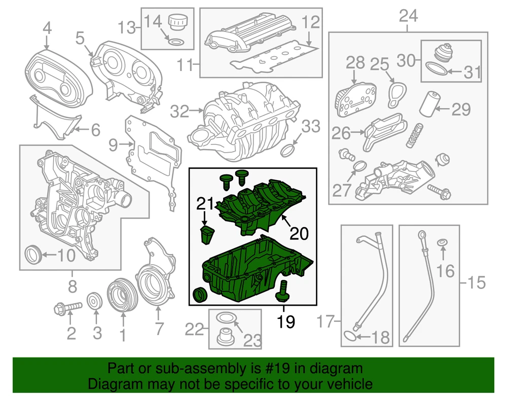 aaronchevrolet Genuine GM Pan 25194722 Part can be found as # 19 in the diagram above Specifications Brand GM Manufacturer Part Number 25194722 SKU 25194722 Product Genuine GM Pan 25194722 Replaces 55572041, 55581970 ONLY PART REFERENCE #19 ON THE DIAGRAM IS INCLUDED WARNING : May cause cancer and reproductive harm. See www.P65Warnings.ca.gov for more info. Terms and Conditions Thank you for shopping with us. Please find our policies below. If you have any other questions, please don't hesitate to contact us. Shipping Terms If you are located in Alaska, Hawaii or Puerto Rico Please contact us via eBay email to discuss shipping cost In stock orders ship within 24 hours. Weekend orders will be processed the next business day. If a part is not in stock and must be ordered from the manufacturer, it usually takes 2-3 days to arrive to us and will be promptly shipped to you. Most of the orders are shipped complete within 2-3 business days. A few of the parts ordered from the manufacturer may take up to 5-6 business days to arrive and will shipped to you immediately. Depending upon location, ground shipments usually take 2-7 days. Your order may be shipped Overnight for an additional cost. Oversized shipments will be additional; you will be contacted prior to shipping for approval. We cannot guarantee transit times for ground and oversize orders. Shipping Carrier substitutions may be made at our determination in an attempt to reduce shipping cost to the customer. We do not ship internationally. In the unlikely event that a part has been placed on backorder or discontinued, we will do our best to try and find one for you as quickly as possible. We do not ship COD orders. Return Policy Contact us to arrange for any returns. A copy of the invoice will need to be included with the return. Parts must be resaleable and in the original packaging. We cannot take back used parts. We cannot take back installed or tried parts. Electrical parts are not returnable. We do reserve the right to refuse and return any parts we find have been installed, are used or do not meet the above criteria. Return request need to be within 30 days of receipt. Cancellation Policy An order or a portion of an order may be cancelled up until the time it is shipped and no longer in our possession. Home • Newsletter Signup • Contact Us Copyright © 2025 aaronchevrolet , All rights reserved. Solution by RevolutionParts, Inc. :: Design by OCDesignsOnline