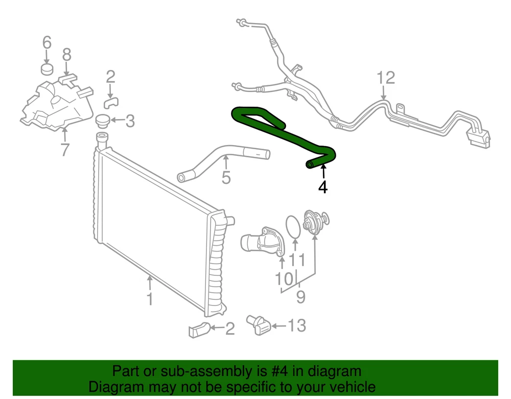 aaronchevrolet Genuine GM Radiator Inlet Hose 19258423 Part can be found as # 4 in the diagram above Product Description Express, savana. 4.8l, 5.3l, 6.0l. 4.8, 5.3, & 6.0L. This GM Genuine Part is designed, engineered, and tested to rigorous standards and is backed by General Motors Specifications Brand GM Manufacturer Part Number 19258423 SKU 19258423 Product Genuine GM Radiator Inlet Hose 19258423 Replaces 19130021 ONLY PART REFERENCE #4 ON THE DIAGRAM IS INCLUDED WARNING : May cause cancer and reproductive harm. See www.P65Warnings.ca.gov for more info. Terms and Conditions Thank you for shopping with us. Please find our policies below. If you have any other questions, please don't hesitate to contact us. Shipping Terms If you are located in Alaska, Hawaii or Puerto Rico Please contact us via eBay email to discuss shipping cost In stock orders ship within 24 hours. Weekend orders will be processed the next business day. If a part is not in stock and must be ordered from the manufacturer, it usually takes 2-3 days to arrive to us and will be promptly shipped to you. Most of the orders are shipped complete within 2-3 business days. A few of the parts ordered from the manufacturer may take up to 5-6 business days to arrive and will shipped to you immediately. Depending upon location, ground shipments usually take 2-7 days. Your order may be shipped Overnight for an additional cost. Oversized shipments will be additional; you will be contacted prior to shipping for approval. We cannot guarantee transit times for ground and oversize orders. Shipping Carrier substitutions may be made at our determination in an attempt to reduce shipping cost to the customer. We do not ship internationally. In the unlikely event that a part has been placed on backorder or discontinued, we will do our best to try and find one for you as quickly as possible. We do not ship COD orders. Return Policy Contact us to arrange for any returns. A copy of the invoice will need to be included with the return. Parts must be resaleable and in the original packaging. We cannot take back used parts. We cannot take back installed or tried parts. Electrical parts are not returnable. We do reserve the right to refuse and return any parts we find have been installed, are used or do not meet the above criteria. Return request need to be within 30 days of receipt. Cancellation Policy An order or a portion of an order may be cancelled up until the time it is shipped and no longer in our possession. Home • Newsletter Signup • Contact Us Copyright © 2025 aaronchevrolet , All rights reserved. Solution by RevolutionParts, Inc. :: Design by OCDesignsOnline