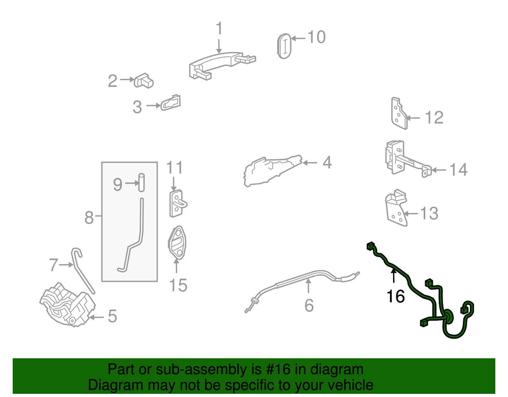 VRAY-GMC Genuine GM Rear Passenger Side Door Wiring Harness 13462890 Part can be found as # 16 in the diagram above Product Description Without gs. This GM Genuine Part is designed, engineered, and tested to rigorous standards and is backed by General Motors Specifications Brand GM Manufacturer Part Number 13462890 SKU 13462890 Product Genuine GM Rear Passenger Side Door Wiring Harness 13462890 ONLY PART REFERENCE #16 ON THE DIAGRAM IS INCLUDED WARNING : May cause cancer and reproductive harm. See www.P65Warnings.ca.gov for more info. Terms and Conditions Thank you for shopping with us. Please find our policies below. If you have any other questions, please don't hesitate to contact us. Shipping Terms In stock orders ship within 24 hours. Weekend orders will be processed the next business day. If a part is not in stock and must be ordered from the manufacturer, it usually takes 2-3 days to arrive to us and will be promptly shipped to you. Most of the orders are shipped complete within 2-3 business days. A few of the parts ordered from the manufacturer may take up to 5-6 business days to arrive and will shipped to you immediately. Depending upon location, ground shipments usually take 2-7 days. Your order may be shipped Overnight for an additional cost. Oversized shipments will be additional; you will be contacted prior to shipping for approval. We cannot guarantee transit times for ground and oversize orders. Shipping Carrier substitutions may be made at our determination in an attempt to reduce shipping cost to the customer. We do not ship internationally. In the unlikely event that a part has been placed on backorder or discontinued, we will do our best to try and find one for you as quickly as possible. We do not ship COD orders. Return Policy Contact us to arrange for any returns. A copy of the invoice will need to be included with the return. Parts must be resaleable and in the original packaging. We cannot take back used parts. We cannot take back installed or tried parts. Electrical parts are not returnable. We do reserve the right to refuse and return any parts we find have been installed, are used or do not meet the above criteria. Return request need to be within 30 days of receipt. Cancellation Policy An order or a portion of an order may be cancelled up until the time it is shipped and no longer in our possession. Home • Newsletter Signup • Contact Us Copyright © 2025 VRAY-GMC , All rights reserved. Solution by RevolutionParts, Inc. :: Design by OCDesignsOnline
