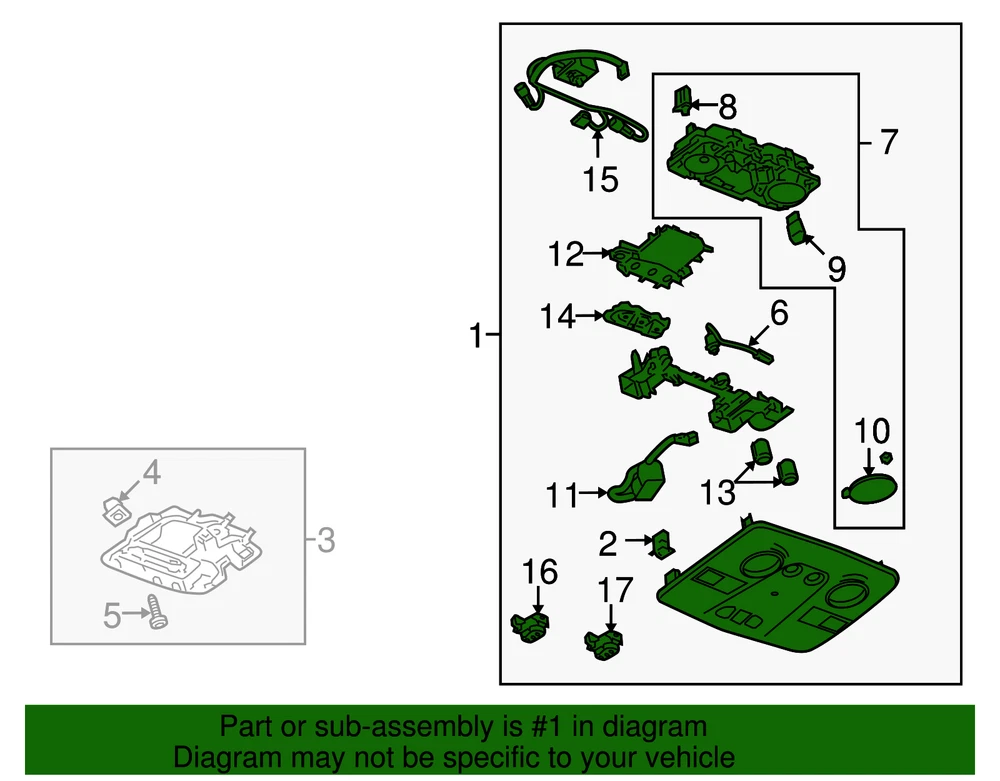 aaronchevrolet Genuine GM Roof Console 25978350 Part can be found as # 1 in the diagram above Product Description With sunroof, without dvd console, titanium. Front, with sunroof. With sunroof, without g.p.s. Specifications Brand GM Manufacturer Part Number 25978350 SKU 25978350 Product Genuine GM Roof Console 25978350 Replaces 15927624 ONLY PART REFERENCE #1 ON THE DIAGRAM IS INCLUDED WARNING : May cause cancer and reproductive harm. See www.P65Warnings.ca.gov for more info. Terms and Conditions Thank you for shopping with us. Please find our policies below. If you have any other questions, please don't hesitate to contact us. Shipping Terms If you are located in Alaska, Hawaii or Puerto Rico Please contact us via eBay email to discuss shipping cost In stock orders ship within 24 hours. Weekend orders will be processed the next business day. If a part is not in stock and must be ordered from the manufacturer, it usually takes 2-3 days to arrive to us and will be promptly shipped to you. Most of the orders are shipped complete within 2-3 business days. A few of the parts ordered from the manufacturer may take up to 5-6 business days to arrive and will shipped to you immediately. Depending upon location, ground shipments usually take 2-7 days. Your order may be shipped Overnight for an additional cost. Oversized shipments will be additional; you will be contacted prior to shipping for approval. We cannot guarantee transit times for ground and oversize orders. Shipping Carrier substitutions may be made at our determination in an attempt to reduce shipping cost to the customer. We do not ship internationally. In the unlikely event that a part has been placed on backorder or discontinued, we will do our best to try and find one for you as quickly as possible. We do not ship COD orders. Return Policy Contact us to arrange for any returns. A copy of the invoice will need to be included with the return. Parts must be resaleable and in the original packaging. We cannot take back used parts. We cannot take back installed or tried parts. Electrical parts are not returnable. We do reserve the right to refuse and return any parts we find have been installed, are used or do not meet the above criteria. Return request need to be within 30 days of receipt. Cancellation Policy An order or a portion of an order may be cancelled up until the time it is shipped and no longer in our possession. Home • Newsletter Signup • Contact Us Copyright © 2025 aaronchevrolet , All rights reserved. Solution by RevolutionParts, Inc. :: Design by OCDesignsOnline
