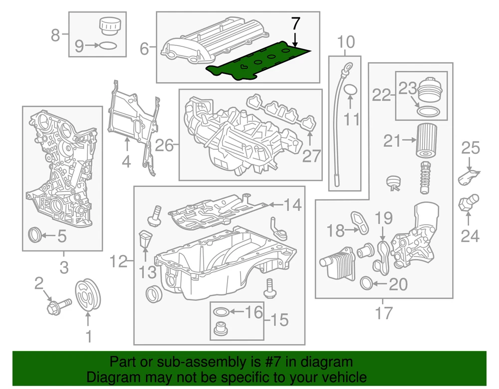 aaronchevrolet Genuine GM Seal 25198753 Part can be found as # 7 in the diagram above Specifications Brand GM Manufacturer Part Number 25198753 SKU 25198753 Product Genuine GM Seal 25198753 Replaces 55573747 ONLY PART REFERENCE #7 ON THE DIAGRAM IS INCLUDED WARNING : May cause cancer and reproductive harm. See www.P65Warnings.ca.gov for more info. Terms and Conditions Thank you for shopping with us. Please find our policies below. If you have any other questions, please don't hesitate to contact us. Shipping Terms If you are located in Alaska, Hawaii or Puerto Rico Please contact us via eBay email to discuss shipping cost In stock orders ship within 24 hours. Weekend orders will be processed the next business day. If a part is not in stock and must be ordered from the manufacturer, it usually takes 2-3 days to arrive to us and will be promptly shipped to you. Most of the orders are shipped complete within 2-3 business days. A few of the parts ordered from the manufacturer may take up to 5-6 business days to arrive and will shipped to you immediately. Depending upon location, ground shipments usually take 2-7 days. Your order may be shipped Overnight for an additional cost. Oversized shipments will be additional; you will be contacted prior to shipping for approval. We cannot guarantee transit times for ground and oversize orders. Shipping Carrier substitutions may be made at our determination in an attempt to reduce shipping cost to the customer. We do not ship internationally. In the unlikely event that a part has been placed on backorder or discontinued, we will do our best to try and find one for you as quickly as possible. We do not ship COD orders. Return Policy Contact us to arrange for any returns. A copy of the invoice will need to be included with the return. Parts must be resaleable and in the original packaging. We cannot take back used parts. We cannot take back installed or tried parts. Electrical parts are not returnable. We do reserve the right to refuse and return any parts we find have been installed, are used or do not meet the above criteria. Return request need to be within 30 days of receipt. Cancellation Policy An order or a portion of an order may be cancelled up until the time it is shipped and no longer in our possession. Home • Newsletter Signup • Contact Us Copyright © 2025 aaronchevrolet , All rights reserved. Solution by RevolutionParts, Inc. :: Design by OCDesignsOnline
