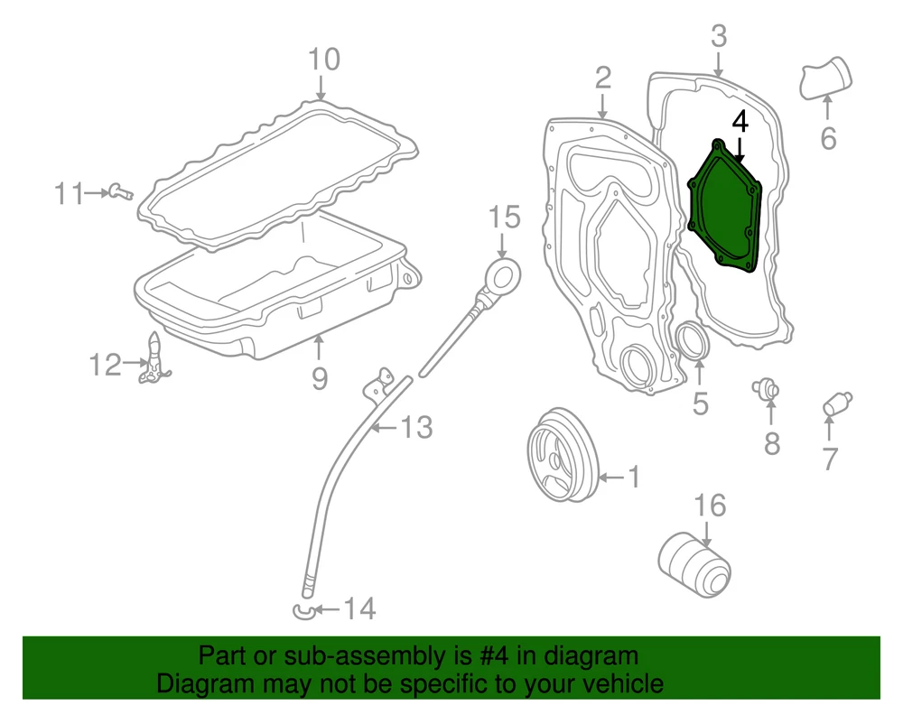 VRAY-GMC Genuine GM Timing Cover Gasket 24574584 Part can be found as # 4 in the diagram above Product Description Cavalier, Sunfire. Inner. 2.4l. Provides a tight seal to help keep foreign material from entering the timing components Specifications Brand GM Manufacturer Part Number 24574584 SKU 24574584 Product Genuine GM Timing Cover Gasket 24574584 ONLY PART REFERENCE #4 ON THE DIAGRAM IS INCLUDED WARNING : May cause cancer and reproductive harm. See www.P65Warnings.ca.gov for more info. Terms and Conditions Thank you for shopping with us. Please find our policies below. If you have any other questions, please don't hesitate to contact us. Shipping Terms In stock orders ship within 24 hours. Weekend orders will be processed the next business day. If a part is not in stock and must be ordered from the manufacturer, it usually takes 2-3 days to arrive to us and will be promptly shipped to you. Most of the orders are shipped complete within 2-3 business days. A few of the parts ordered from the manufacturer may take up to 5-6 business days to arrive and will shipped to you immediately. Depending upon location, ground shipments usually take 2-7 days. Your order may be shipped Overnight for an additional cost. Oversized shipments will be additional; you will be contacted prior to shipping for approval. We cannot guarantee transit times for ground and oversize orders. Shipping Carrier substitutions may be made at our determination in an attempt to reduce shipping cost to the customer. We do not ship internationally. In the unlikely event that a part has been placed on backorder or discontinued, we will do our best to try and find one for you as quickly as possible. We do not ship COD orders. Return Policy Contact us to arrange for any returns. A copy of the invoice will need to be included with the return. Parts must be resaleable and in the original packaging. We cannot take back used parts. We cannot take back installed or tried parts. Electrical parts are not returnable. We do reserve the right to refuse and return any parts we find have been installed, are used or do not meet the above criteria. Return request need to be within 30 days of receipt. Cancellation Policy An order or a portion of an order may be cancelled up until the time it is shipped and no longer in our possession. Home • Newsletter Signup • Contact Us Copyright © 2025 VRAY-GMC , All rights reserved. Solution by RevolutionParts, Inc. :: Design by OCDesignsOnline