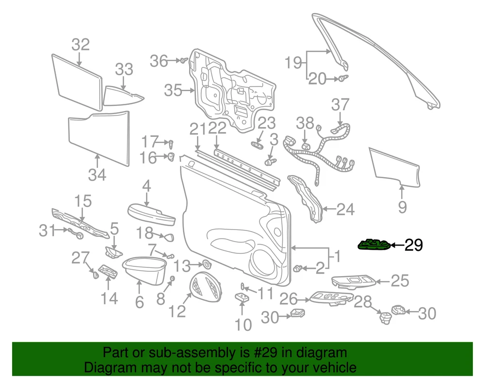 VRAY-GMC Genuine GM Tuxedo Blue Side Window Switch 25719212 Part can be found as # 29 in the diagram above Product Description Blue. Controls the power to your vehicle's windows This GM Genuine Part is designed, engineered, and tested to rigorous standards and is backed by General Motors Collision parts are designed to help promote proper and safe repair Specifications Brand GM Manufacturer Part Number 25719212 SKU 25719212 Product Genuine GM Tuxedo Blue Side Window Switch 25719212 Replaces 25714328 ONLY PART REFERENCE #29 ON THE DIAGRAM IS INCLUDED WARNING : May cause cancer and reproductive harm. See www.P65Warnings.ca.gov for more info. Terms and Conditions Thank you for shopping with us. Please find our policies below. If you have any other questions, please don't hesitate to contact us. Shipping Terms In stock orders ship within 24 hours. Weekend orders will be processed the next business day. If a part is not in stock and must be ordered from the manufacturer, it usually takes 2-3 days to arrive to us and will be promptly shipped to you. Most of the orders are shipped complete within 2-3 business days. A few of the parts ordered from the manufacturer may take up to 5-6 business days to arrive and will shipped to you immediately. Depending upon location, ground shipments usually take 2-7 days. Your order may be shipped Overnight for an additional cost. Oversized shipments will be additional; you will be contacted prior to shipping for approval. We cannot guarantee transit times for ground and oversize orders. Shipping Carrier substitutions may be made at our determination in an attempt to reduce shipping cost to the customer. We do not ship internationally. In the unlikely event that a part has been placed on backorder or discontinued, we will do our best to try and find one for you as quickly as possible. We do not ship COD orders. Return Policy Contact us to arrange for any returns. A copy of the invoice will need to be included with the return. Parts must be resaleable and in the original packaging. We cannot take back used parts. We cannot take back installed or tried parts. Electrical parts are not returnable. We do reserve the right to refuse and return any parts we find have been installed, are used or do not meet the above criteria. Return request need to be within 30 days of receipt. Cancellation Policy An order or a portion of an order may be cancelled up until the time it is shipped and no longer in our possession. Home • Newsletter Signup • Contact Us Copyright © 2025 VRAY-GMC , All rights reserved. Solution by RevolutionParts, Inc. :: Design by OCDesignsOnline