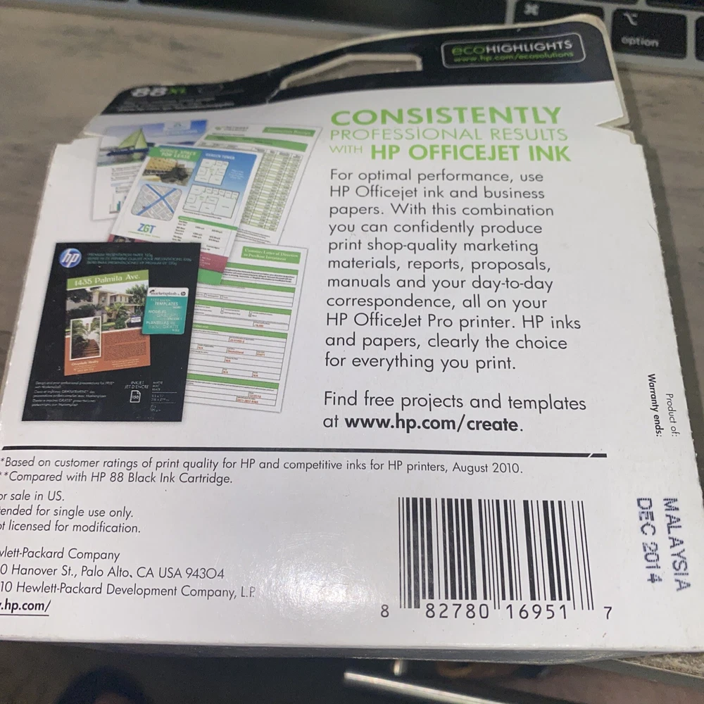 This genuine HP 88XL black ink cartridge is brand new and factory sealed with an expiration date of November 2014. It is compatible with various models of HP OfficeJet Pro printers and has a print technology of inkjet. The manufacturer color is black, and it is made in Singapore. The ink cartridge is suitable for HP printers that require a genuine and original cartridge. It is a high-quality product from a reputable brand, HP, and has been designed to provide a smooth and efficient printing experience. This ink cartridge is perfect for those who need to print high-quality documents and images.
