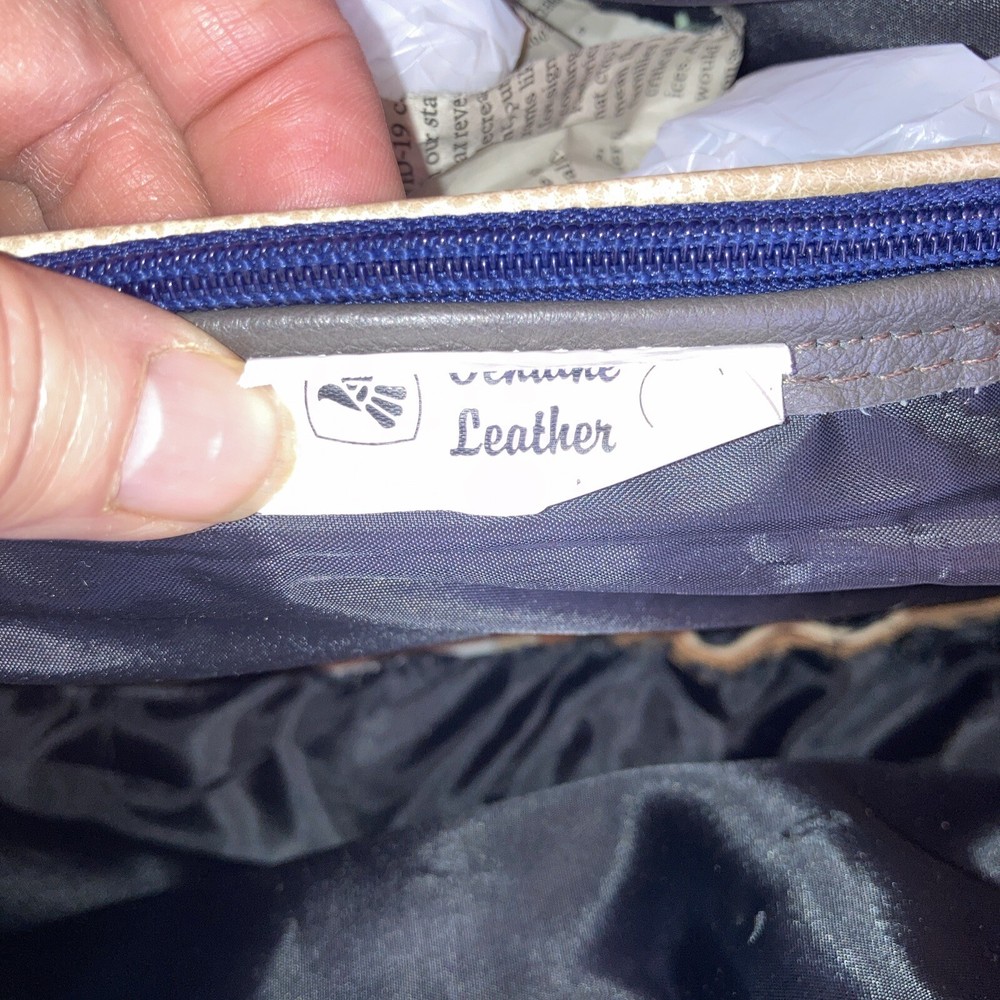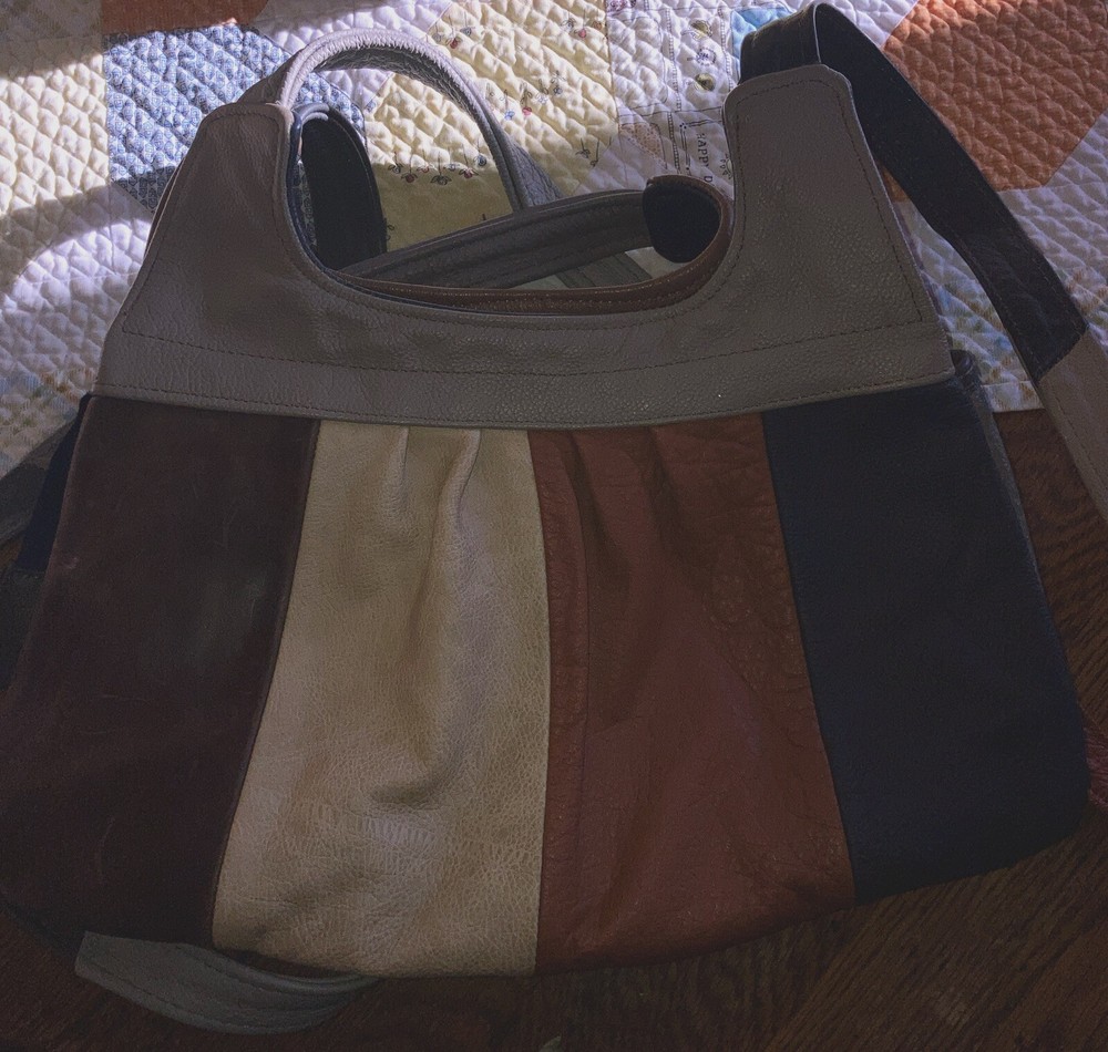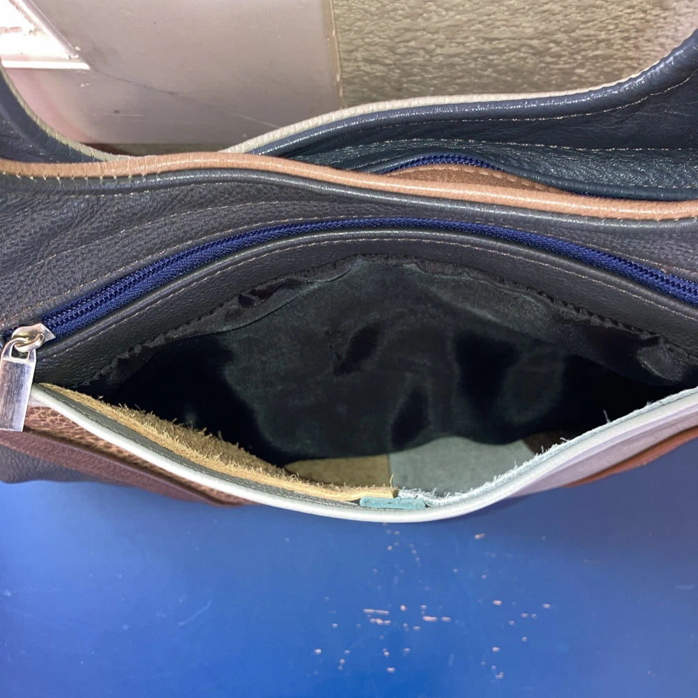 This beautiful shoulder bag is made of genuine leather in stunning shades of brown and gray. With five compartments, it provides ample space for all your essentials. It has never been used, making it a perfect addition to your collection. The exterior is crafted from high-quality leather. It's perfect for women who want a stylish and functional accessory that will last for years. Bag size 14.5 w x 9.5 H. Not including straps