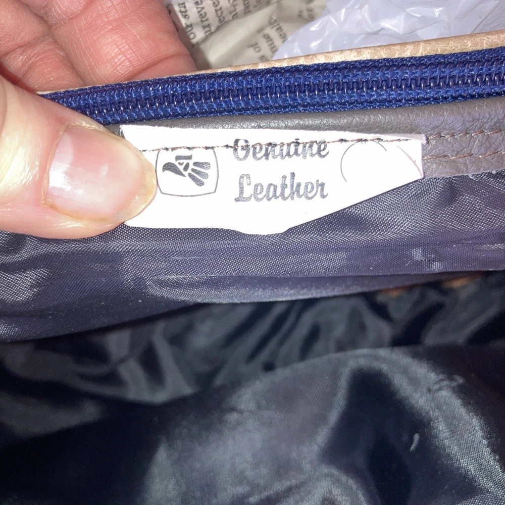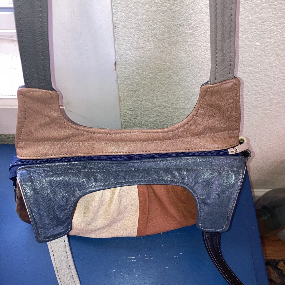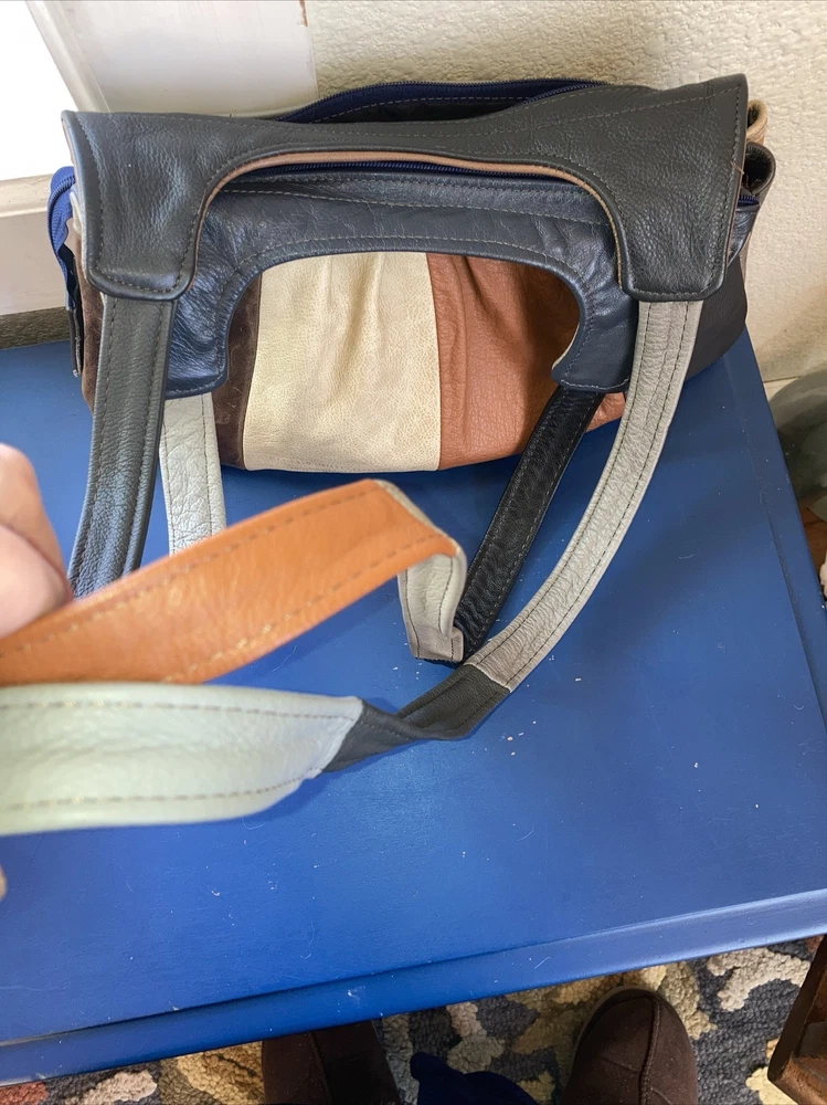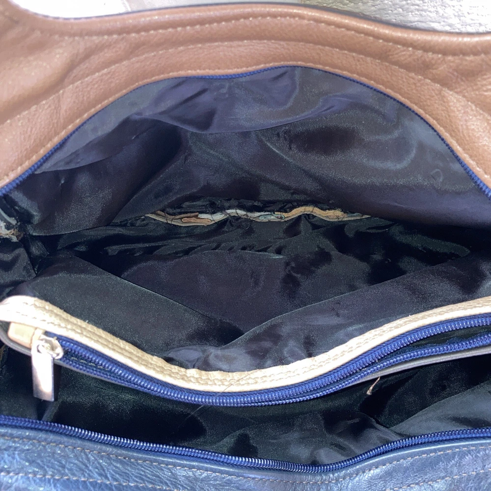 This beautiful shoulder bag is made of genuine leather in stunning shades of brown and gray. With five compartments, it provides ample space for all your essentials. It has never been used, making it a perfect addition to your collection. The exterior is crafted from high-quality leather. It's perfect for women who want a stylish and functional accessory that will last for years. Bag size 14.5 w x 9.5 H. Not including straps