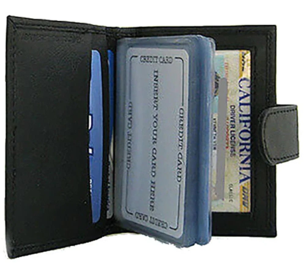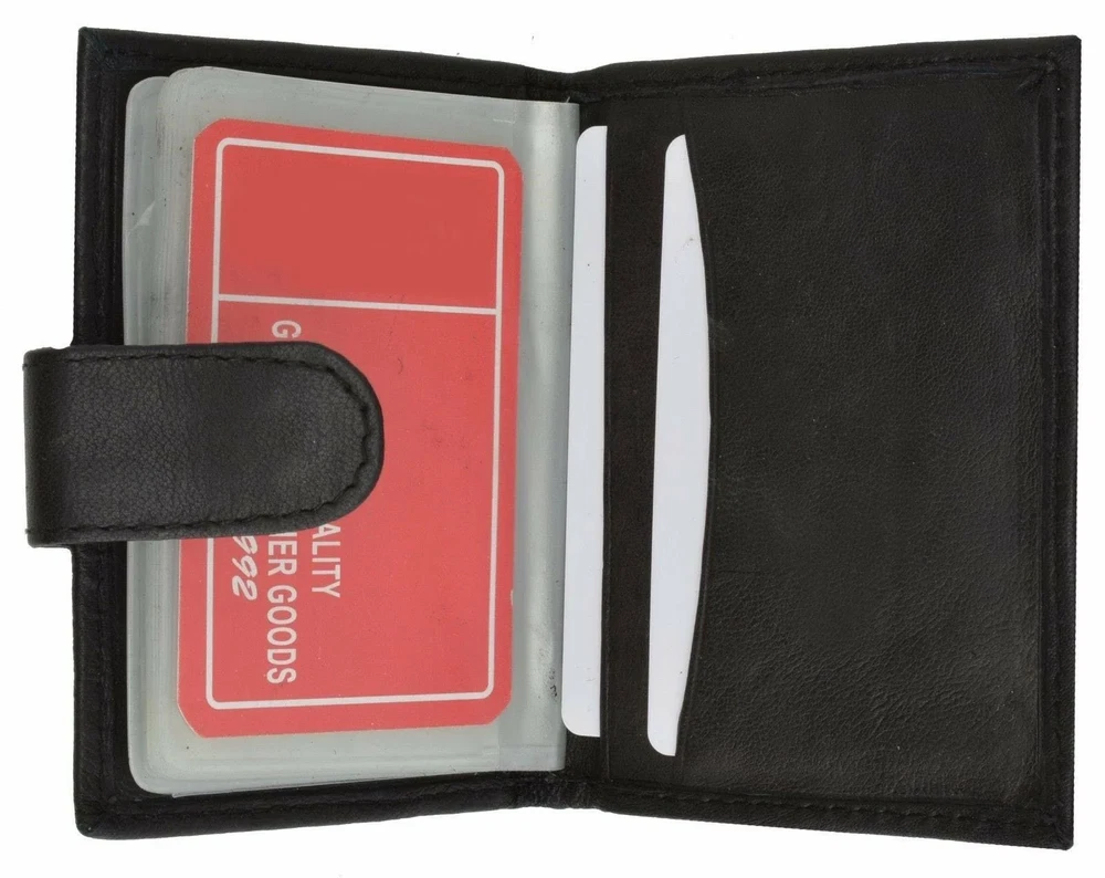 Features: Condition: New Material: 100% Genuine Leather Color: Black Length: 4.25 inches Width: 3 inches Inside Detail: 10-20+ Business Card inserts and Credit card holder, picture ID, Other Compartment for Inserts.