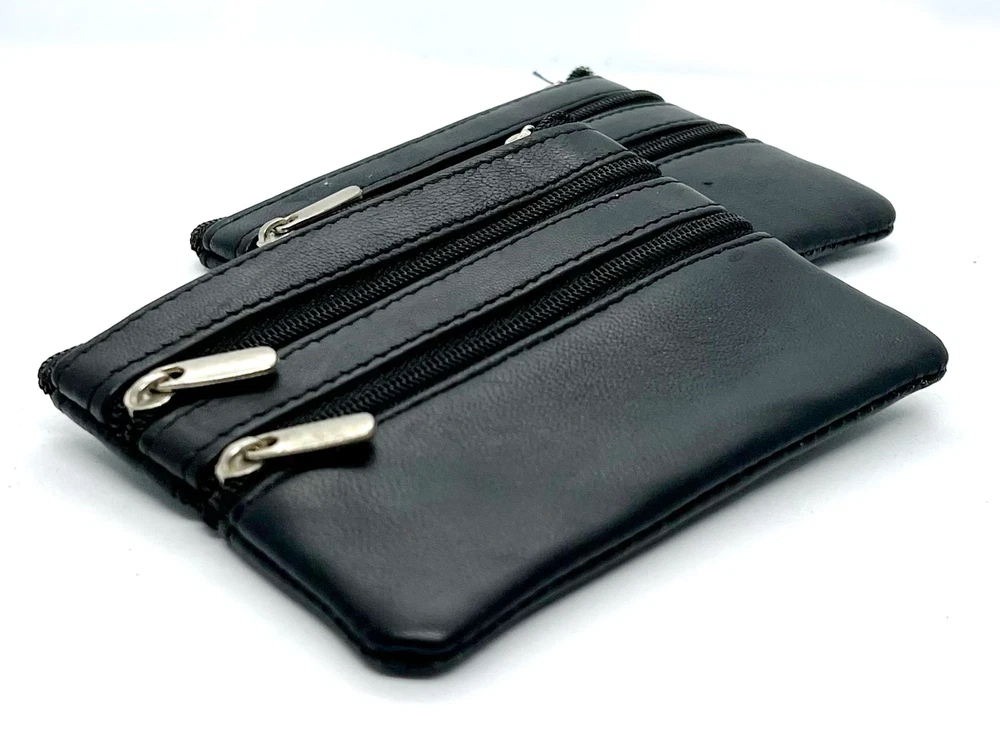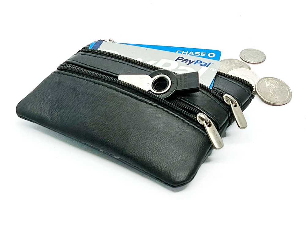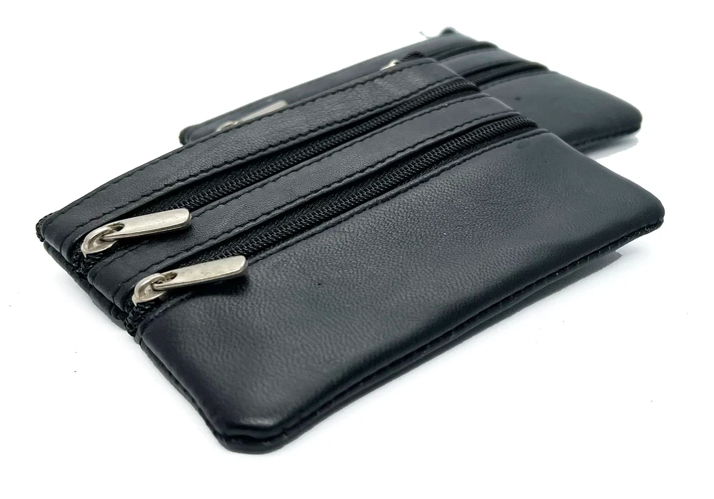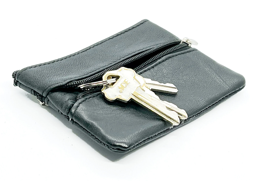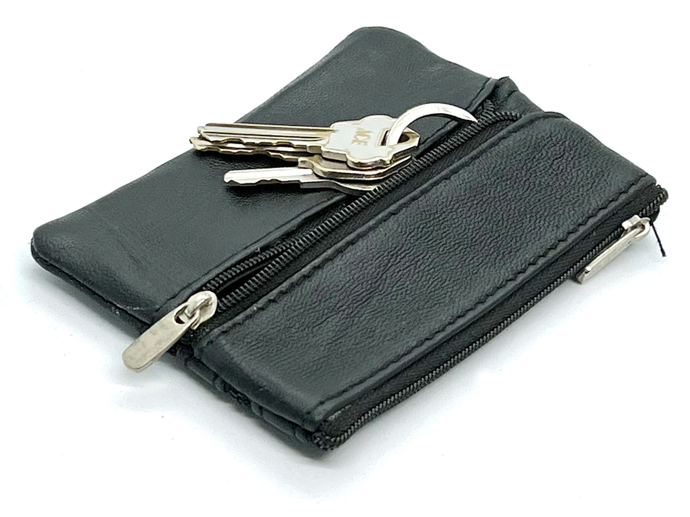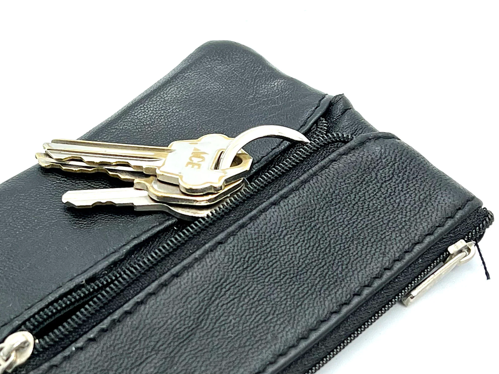 Genuine Leather Compact ID Card Holder with Keychain and Coin Pocket