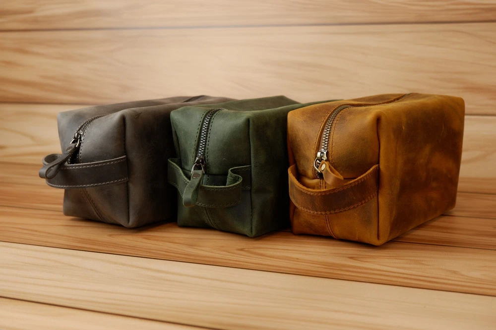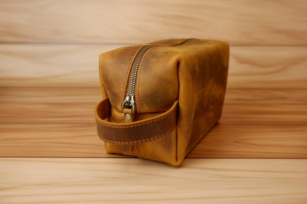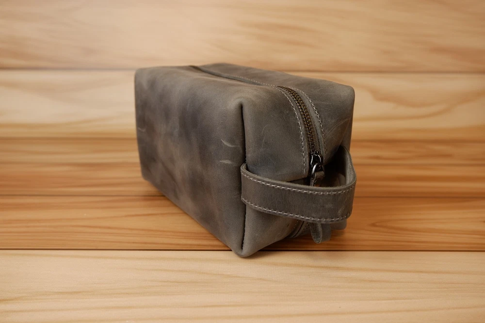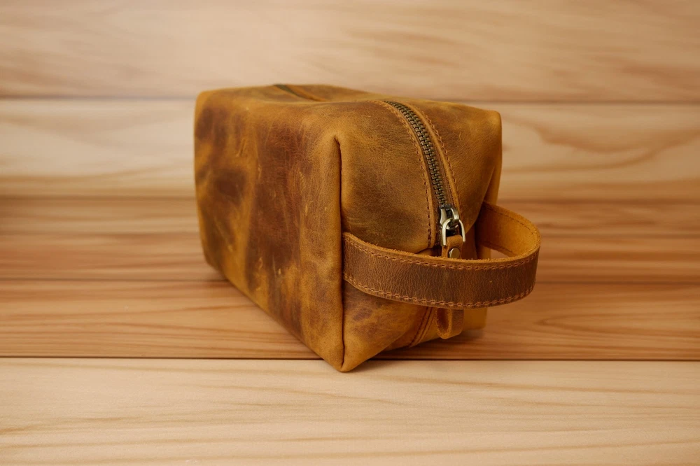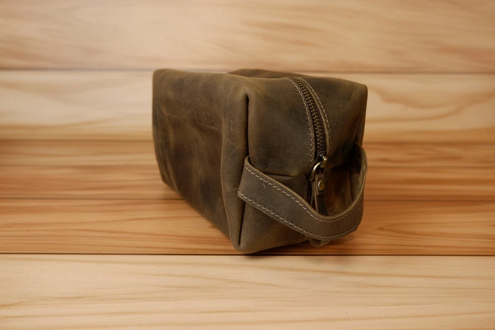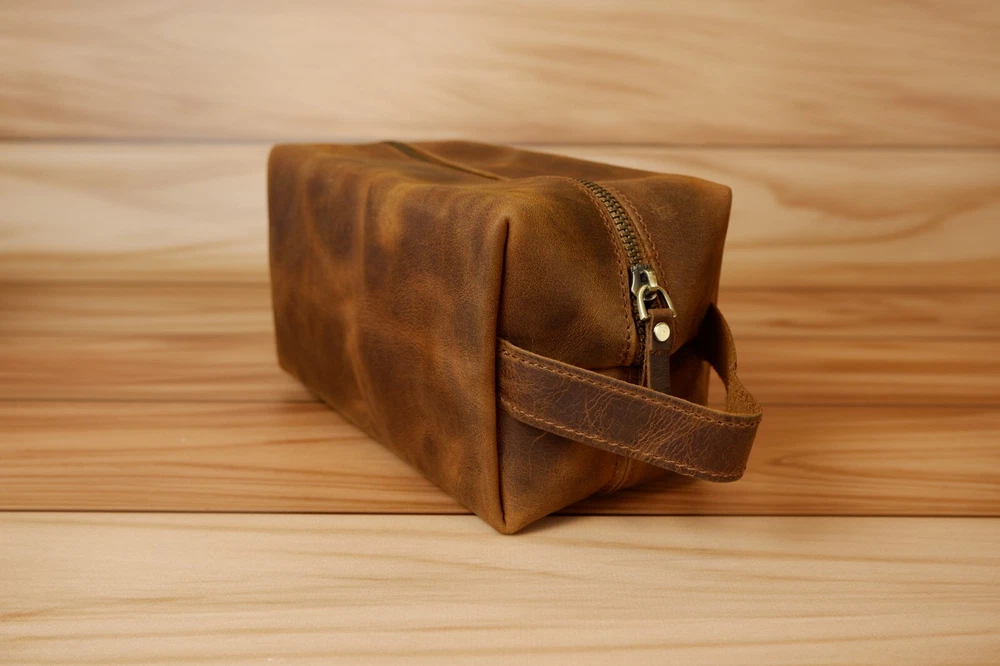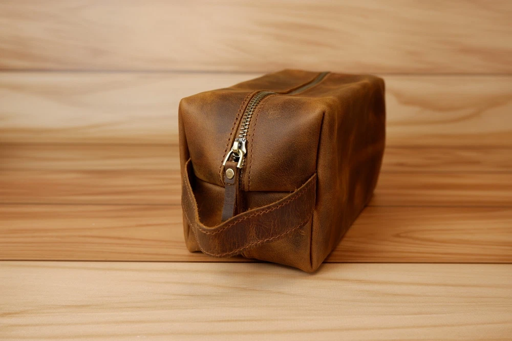 Genuine Leather Dopp Kit, Personal Care Bag, Makeup Bag, Carry Handle Toiletry