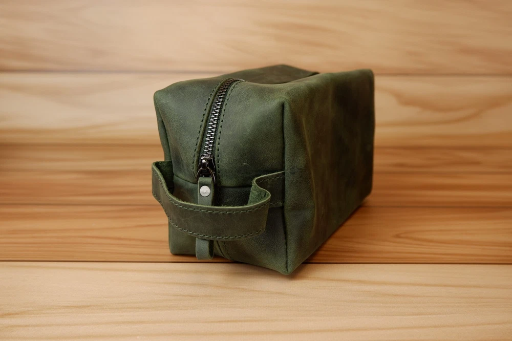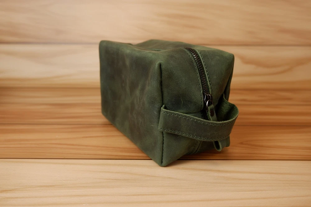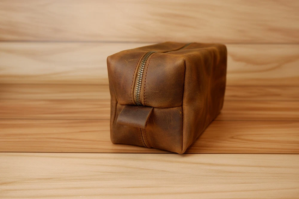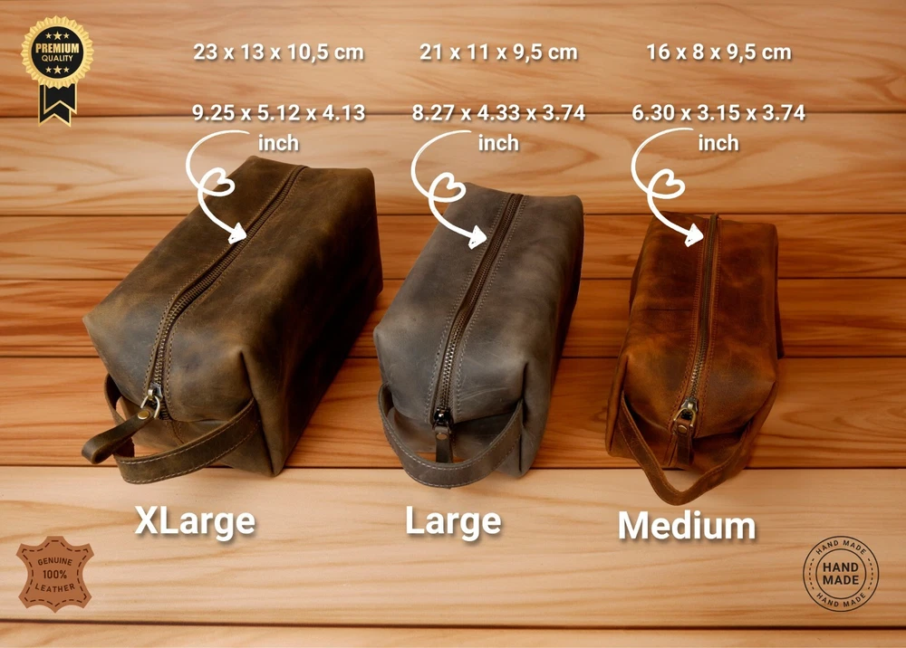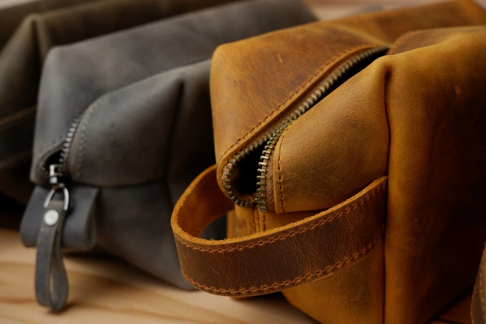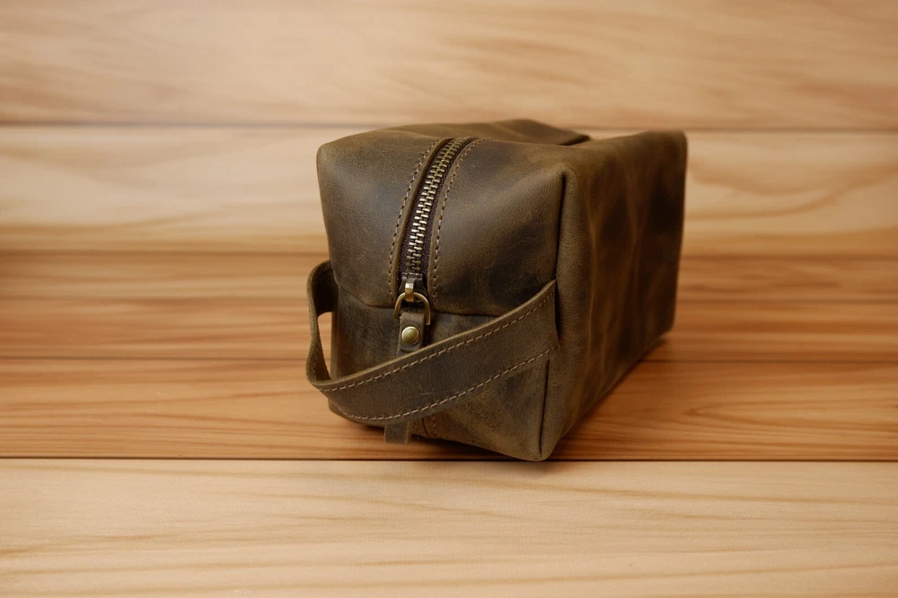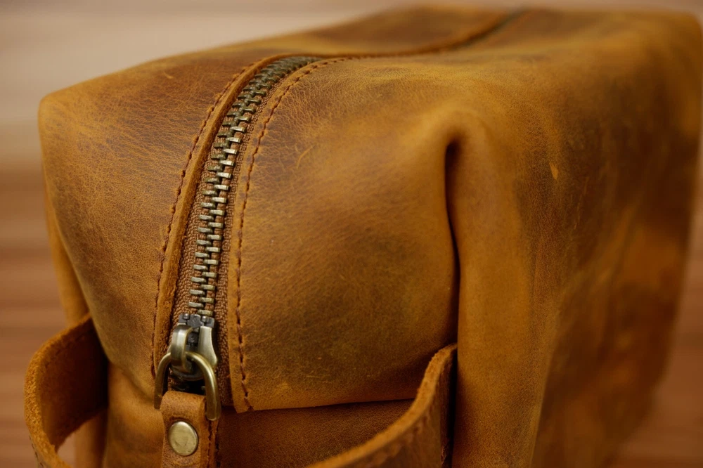 Genuine Leather Dopp Kit, Personal Care Bag, Makeup Bag, Carry Handle Toiletry