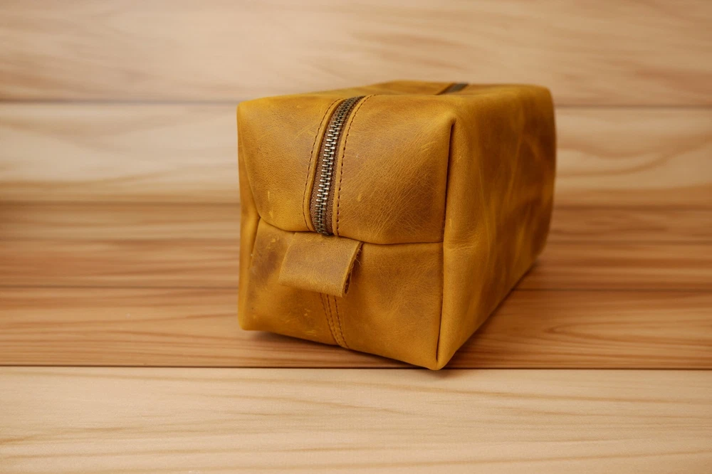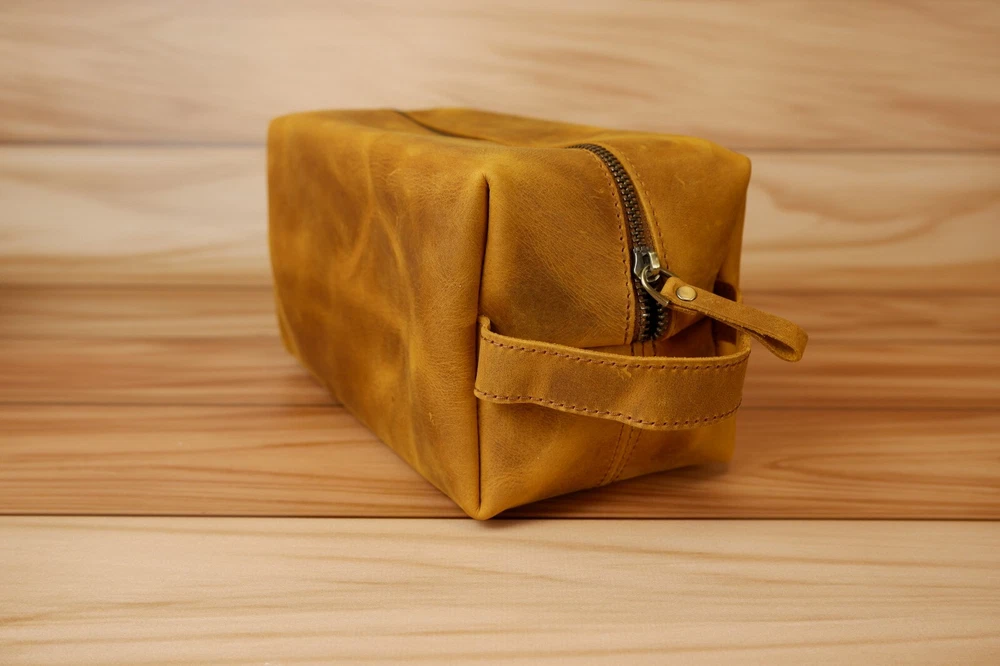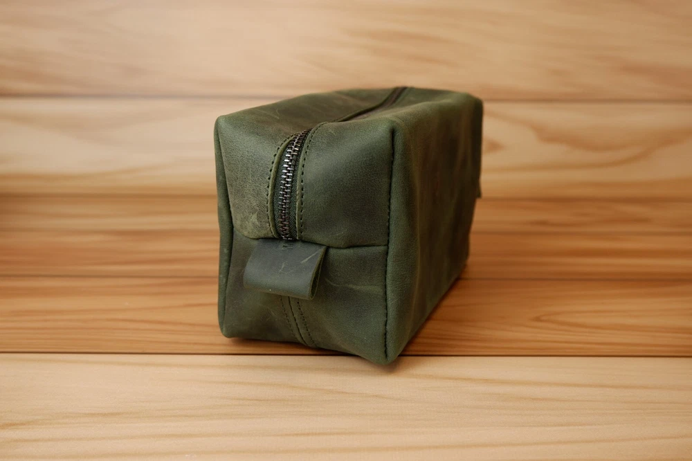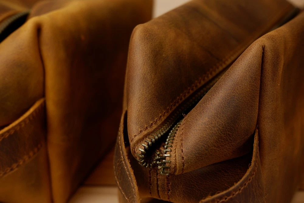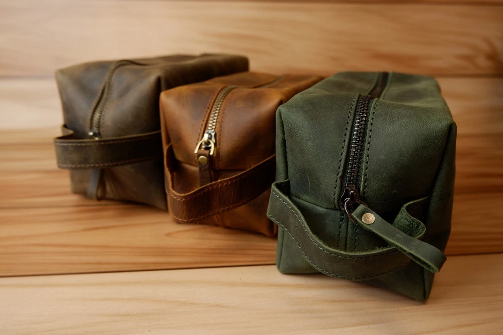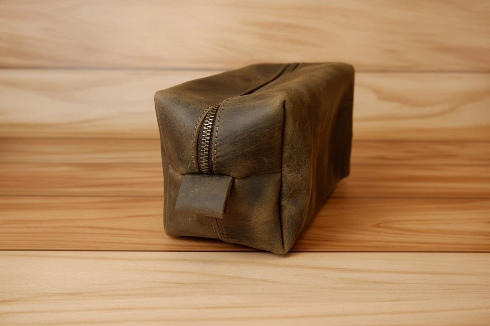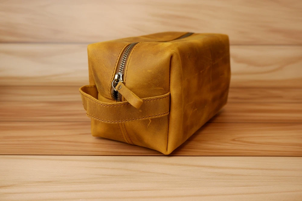 Genuine Leather Dopp Kit, Personal Care Bag, Makeup Bag, Carry Handle Toiletry