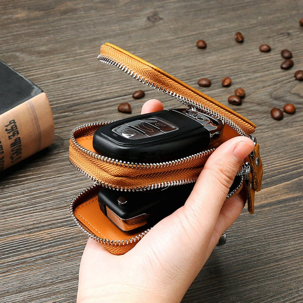 This key wallet is a game-changer! The genuine leather feels premium and durable, while the dual-layer design keeps everything organized—love the clear window for easy key access. It’s compact yet fits all my essentials, and the quality is top-notch. Perfect for keeping keys scratch-free and stylish. Highly recommend!