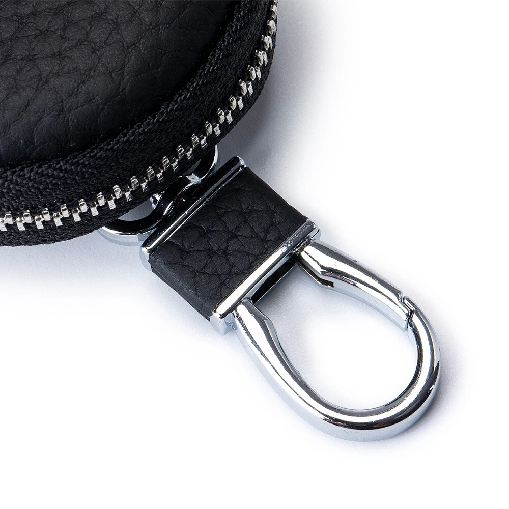 Description: The universal key case suitable for most of Car Key Fob and Keyless Entry (CAN'T BLOCKING RFID SIGNAL),when the case inside your purse/bag/pocket/belt,it works great to lock and unlock door or trunk and can prevent accidental open the door or trunk. This exclusive car key fob case with good craftmanship,Its smooth zipper around has a Kirstine hook for easy and comfortable grip.It has a quick closure,and its easy to put in and get out your vehicle key. Material:Leather Lining material: Polyester Pattern: Solid Size: 9*7*2.5CM Color:AS SHOW There is 2-3% difference according to manual measurement. Package included: 1 x Key Holder