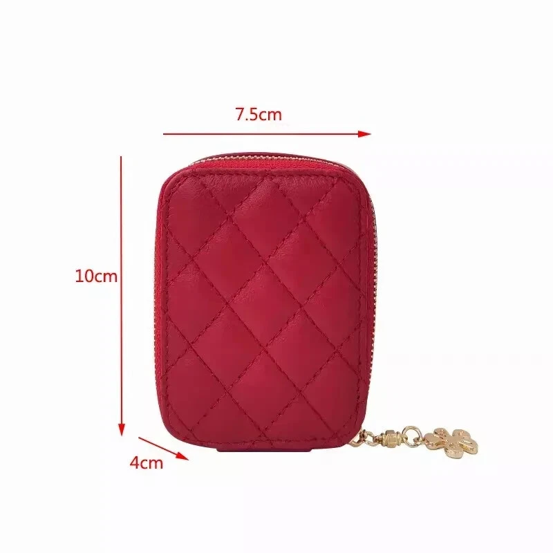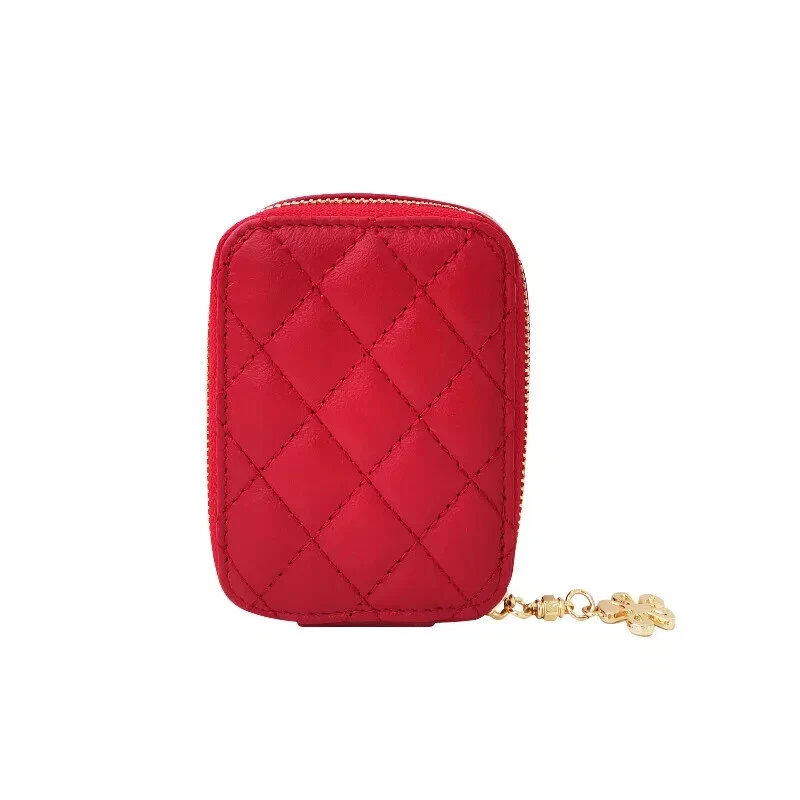 Genuine Leather Portable Lipstick Cosmetic Bag With Mirror Mini Makeup Bag Case