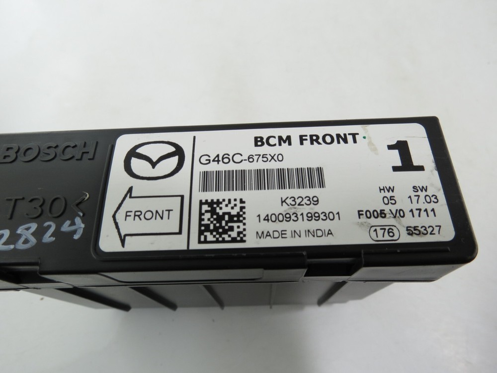 Please Note!!! To get the right one you need, please match your existing part number to our listing as much as you could. If the part number seems different, it means they are different or contact us for more information. Compatibilities are about the engine sizes do Not tell about other parts in the car, so please do not rely on them. ▓ Stock Ref: 2824 ( G46C-675X0 Genuine Mazda 3 6 CX5 Body Control Module BCM Front 1 /HW 05 SW 17.03) Fits: Mazda 3 BL/ Mazda 6 GL / CX5 May fit some other models Description & Specification Genuine Mazda ( BSM) Front (1) Body Control Module Mazda Part No.: G46C-675X0 Number of Pins and/or Blades: 3x Connectors with Multiple Pin HW: 05 SW: 17.03 F005 V0 1711 Made in India by Bosch 12V Condition: Used and Good Working Order Free Postage within United Kingdom only The same day dispatch (cut off time 4:00 pm).