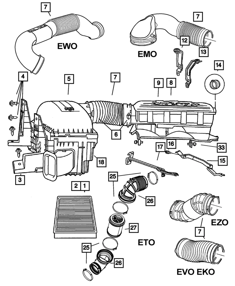 Make: Ram Dodge Genuine OEM: Yes Product Name: Genuine Mopar Air Filter 68441763AA SKU: 68441763AA Manufacturer Warranty: 1 Year Model: 1500 1500 Classic 2500 3500 Ram 1500 Ram 2500 Ram 3500 Fitment Type: Direct Replacement Parts Included: ONLY PART REFERENCE #1 ON THE DIAGRAM IS INCLUDED Replaces Part Number: 53032404AA, 53032404AB, 53032404AC, 68319604AA
