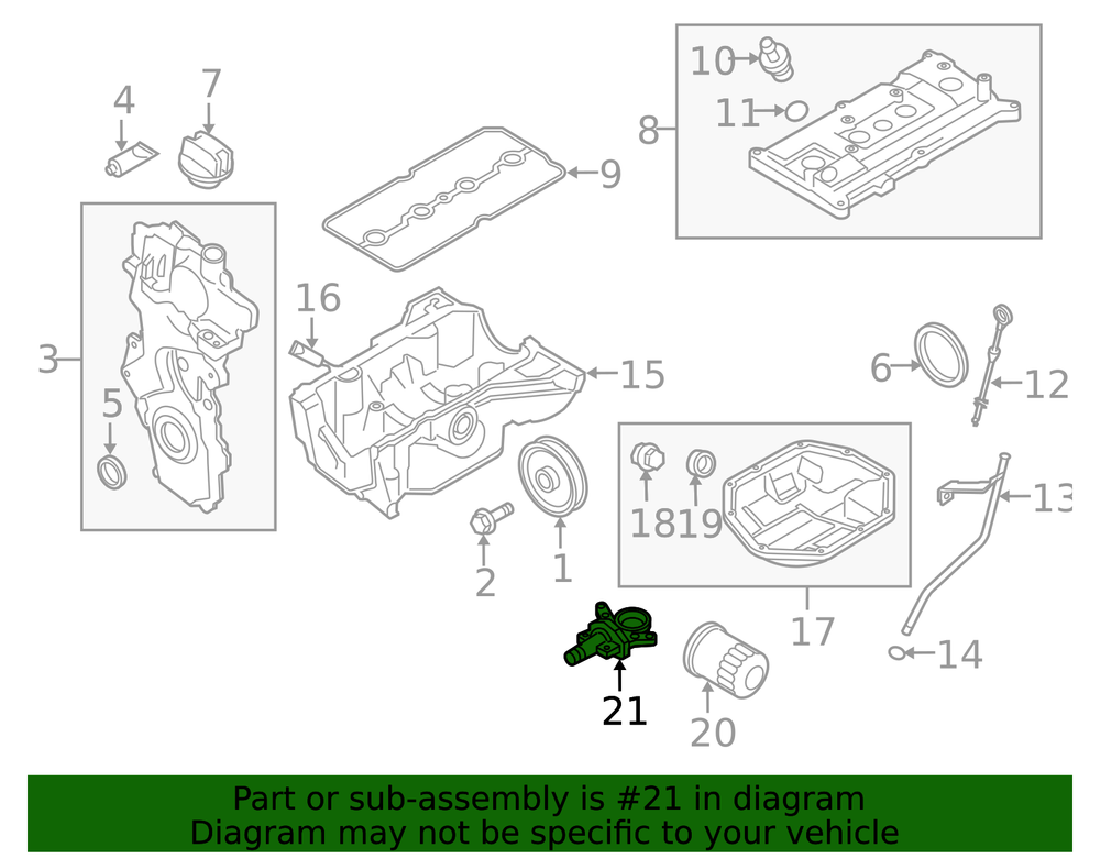 davewrightnissansubaru Genuine Nissan Oil Pump 15010-ED87C Part can be found as # 21 in the diagram above Genuine Nissan Parts Product Description Cube. Specifications Brand Nissan Manufacturer Part Number 15010-ED87C SKU 15010-ED87C Product Genuine Nissan Oil Pump 15010-ED87C Replaces 15010ed80c, 15010ed85c, 15010ed86c ONLY PART REFERENCE #21 ON THE DIAGRAM IS INCLUDED Terms and Conditions Thank you for shopping with us. Please find our policies below. If you have any other questions, please don't hesitate to contact us. Shipping Terms In stock orders ship within 24 hours. Weekend orders will be processed the next business day. If a part is not in stock and must be ordered from the manufacturer, it usually takes 2-3 days to arrive to us and will be promptly shipped to you. Most of the orders are shipped complete within 2-3 business days. A few of the parts ordered from the manufacturer may take up to 5-6 business days to arrive and will shipped to you immediately. Depending upon location, ground shipments usually take 2-7 days. Your order may be shipped Overnight for an additional cost. Oversized shipments will be additional; you will be contacted prior to shipping for approval. We cannot guarantee transit times for ground and oversize orders. Shipping Carrier substitutions may be made at our determination in an attempt to reduce shipping cost to the customer. We do not ship internationally. In the unlikely event that a part has been placed on backorder or discontinued, we will do our best to try and find one for you as quickly as possible. We do not ship COD orders. Return Policy Contact us to arrange for any returns. A copy of the invoice will need to be included with the return. Parts must be resaleable and in the original packaging. We cannot take back used parts. We cannot take back installed or tried parts. Electrical parts are not returnable. We do reserve the right to refuse and return any parts we find have been installed, are used or do not meet the above criteria. Return request need to be within 30 days of receipt. Cancellation Policy An order or a portion of an order may be cancelled up until the time it is shipped and no longer in our possession. Home • Newsletter Signup • Contact Us Copyright © 2026 davewrightnissansubaru , All rights reserved. Solution by RevolutionParts, Inc. :: Design by OCDesignsOnline