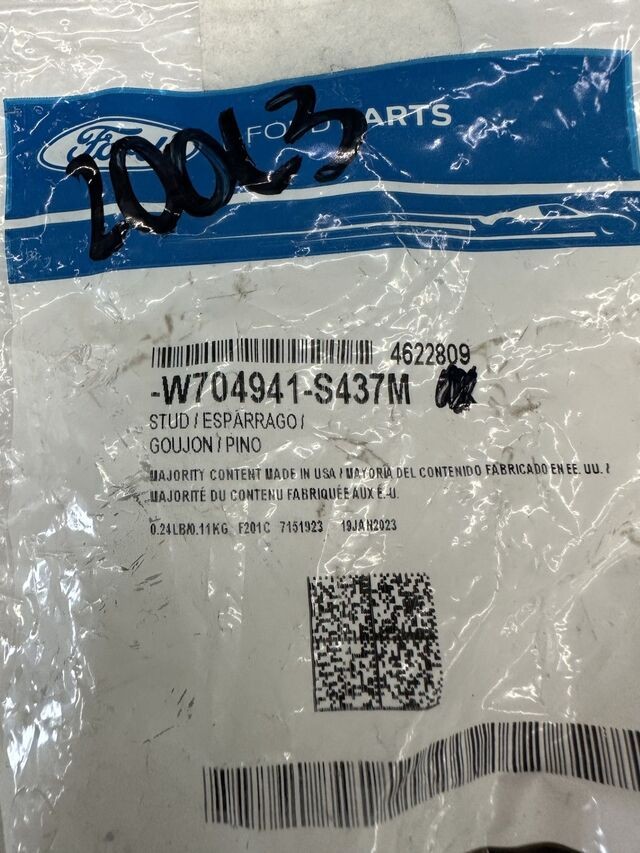 Hiller Parts Department Genuine Starter Stud W704941-S437M Part can be found as # 3 in the diagram above Product Description With gas engines. 6.2L. 2007-14. 6.7L. 5.0L. 2009-10. 5.4L. SOLD IN QUANTITY; 1 Specifications Brand Ford Manufacturer Part Number W704941-S437M SKU W704941-S437M Product Genuine Starter Stud W704941-S437M Replaces N806771-S36 ONLY PART REFERENCE #3 ON THE DIAGRAM IS INCLUDED Terms and Conditions Thank you for shopping with us. Please find our policies below. If you have any other questions, please don't hesitate to contact us. Shipping Terms In stock orders ship within 24 hours. Weekend orders will be processed the next business day. If a part is not in stock and must be ordered from the manufacturer, it usually takes 2-3 days to arrive to us and will be promptly shipped to you. Most of the orders are shipped complete within 2-3 business days. A few of the parts ordered from the manufacturer may take up to 5-6 business days to arrive and will shipped to you immediately. Depending upon location, ground shipments usually take 2-7 days. Your order may be shipped Overnight for an additional cost. Oversized shipments will be additional; you will be contacted prior to shipping for approval. We cannot guarantee transit times for ground and oversize orders. Shipping Carrier substitutions may be made at our determination in an attempt to reduce shipping cost to the customer. In the unlikely event that a part has been placed on backorder or discontinued, we will do our best to try and find one for you as quickly as possible We do not ship COD orders. Return Policy Contact us to arrange for any returns. A copy of the invoice will need to be included with the return. Parts must be resaleable and in the original packaging. 20% restocking fee may be charged, if the return item is used or not sellable. We cannot take back used parts. We cannot take back installed or tried parts. Electrical parts are not returnable. We do reserve the right to refuse and return any parts we find have been installed, are used or do not meet the above criteria. Return request need to be within 30 days of receipt. Cancellation Policy An order or a portion of an order may be cancelled up until the time it is shipped and no longer in our possession. Home • Newsletter Signup • Contact Us Copyright © 2025 Hiller Parts Department , All rights reserved. Solution by RevolutionParts, Inc. :: Design by OCDesignsOnline