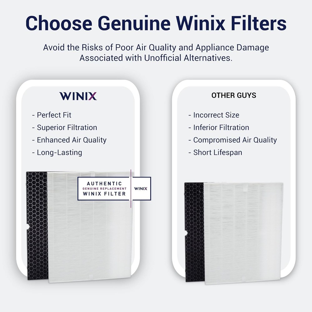 Genuine Winix 116130 Replacement Filter H for 5500-2 Air Purifier , White Product Details Color: White Brand: Winix Product Dimensions: 17.72"D x 12.99"W x 16.73"H Floor Area: 99 Square Meters Controller Type: Hand Control EU Spare Part Availability Duration: 1 Years Contaminant Filtration Capability: True Manufacture Year: 2025 Special Feature: Advanced odor control AOC Carbon filter Manufacturer: Winix Inc Filter Class: HEPA, Carbon Item Weight: 2.16 pounds Item model number: 5500-2 Is Discontinued By Manufacturer: No Assembly required: No Number of pieces: 1 Batteries required: No Included Components: true hepa filter^Washable Advanced Odor Control Carbon Filter; Power SourceItem Weight: Corded Electric2.16 Pounds Power Source: Corded Electric Item Weight: 2.16 Pounds Control MethodFilter Type: TouchHEPA Control Method: Touch Filter Type: HEPA Genuine Winix brand replacement for the Winix 5500-2 air Purifier Includes a 99. 97Percent efficient true HEPA, capturing particles to 0. 3microns With an advanced odor control aoc Carbon filter for blocking VOCs, fumes and odors Winix original filter providing correct airflow Filters last ONE YEAR! Change filters when check filter indicator turns on. Original replacement filter H for the Winix air purifier 5500-2. A one year replacement set with true HEPA filter 99. 97Percent efficient to 0. 3 microns and an advanced odor control AOC carbon filter. Use only original Winix branded filters for the correct filtration capacity.