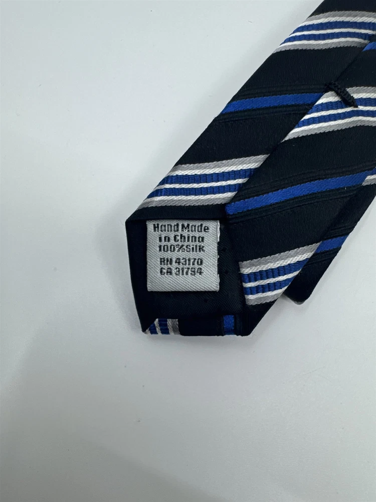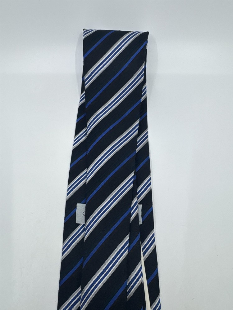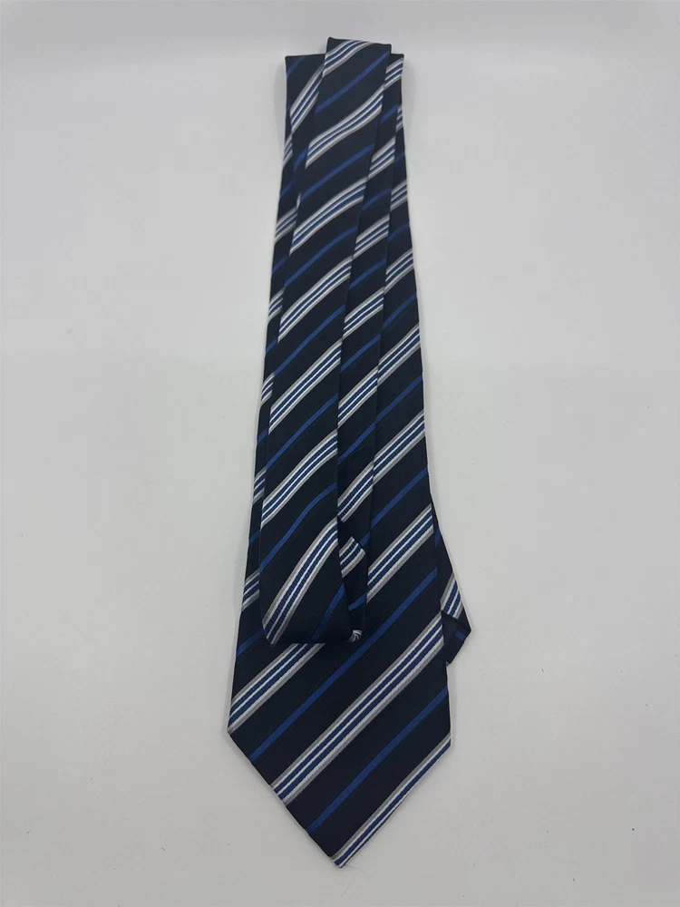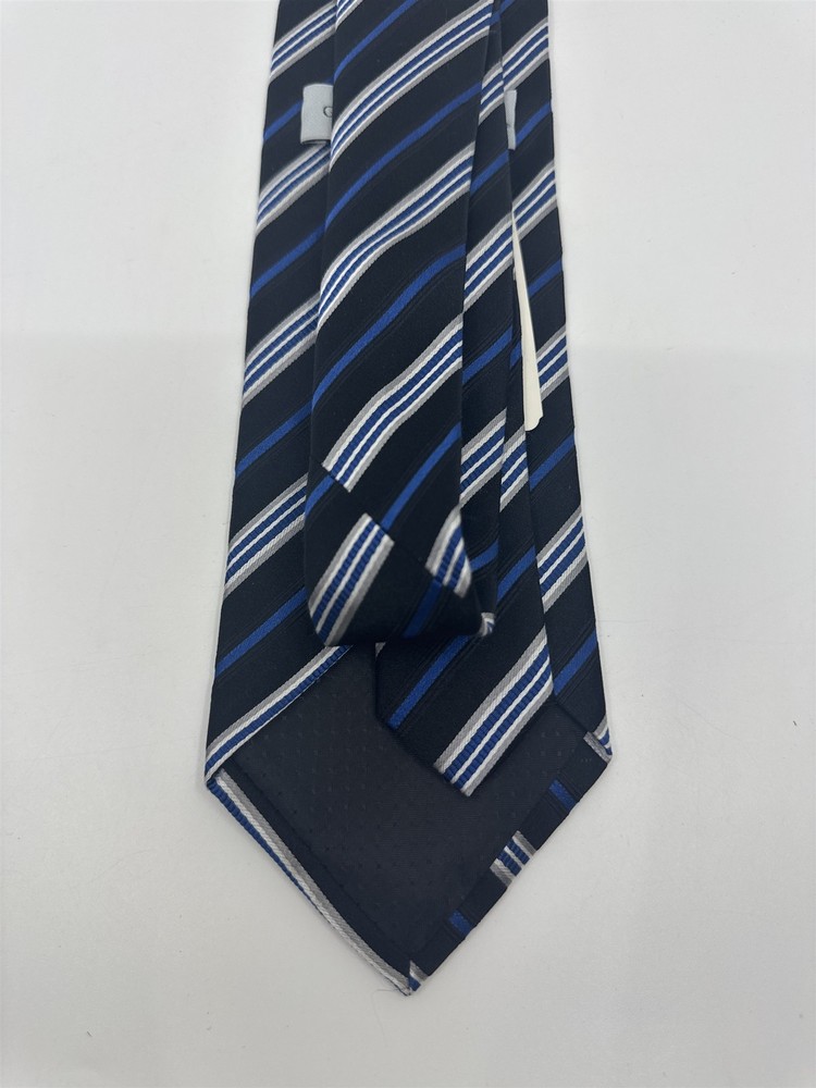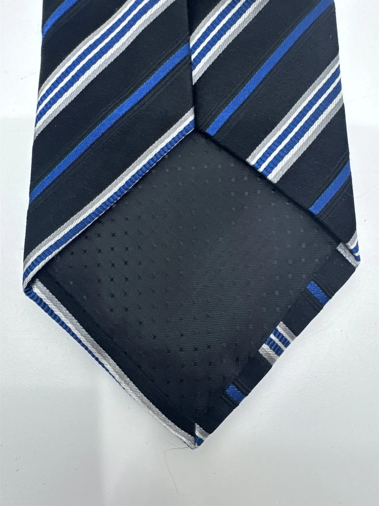 Geoffrey Beene Mens Blue Black Silver Striped Neck Tie With Tags