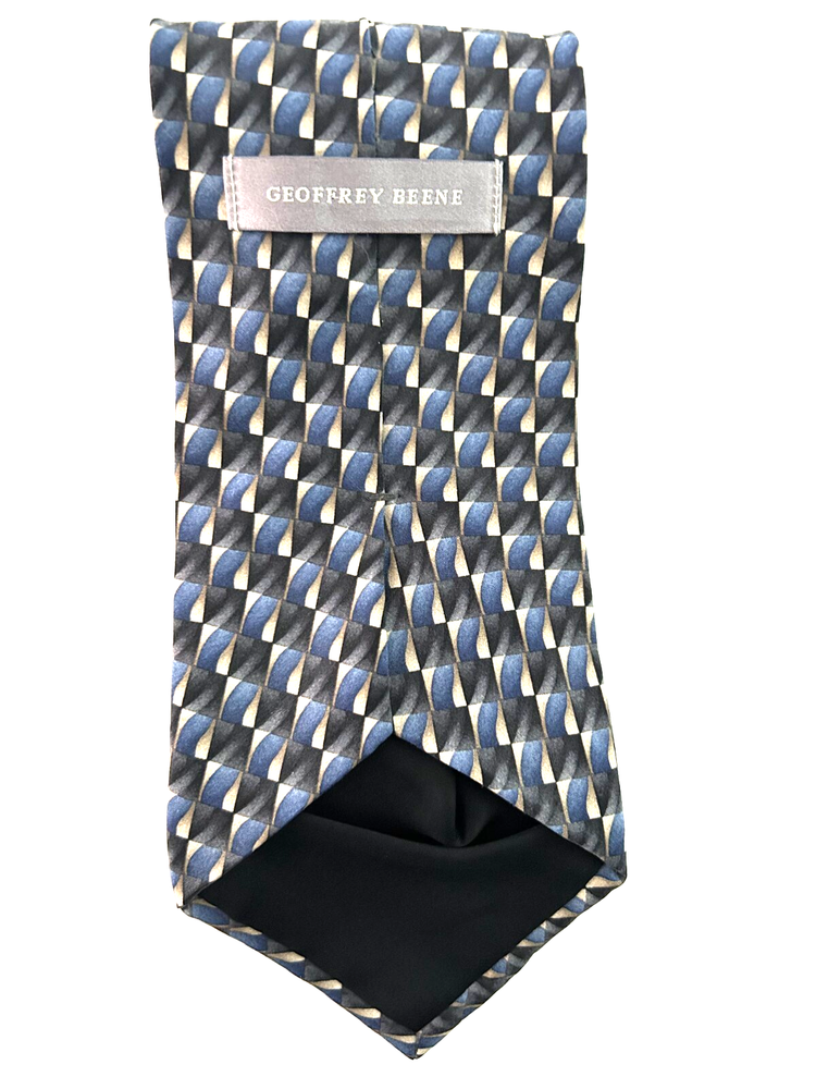 The Geoffrey Beene Blue Black Tan 100% Silk Tie is a stylish and sophisticated accessory for men. Made in the United States, this classic tie features a geometric pattern in blue tones, making it a versatile addition to any formal outfit. With a classic length of 57"-60" and adjustable clip attachment, this tie offers a timeless and elegant style for the modern gentleman. Crafted from high-quality silk, this tie exudes luxury and sophistication, making it a must-have for any man's wardrobe.