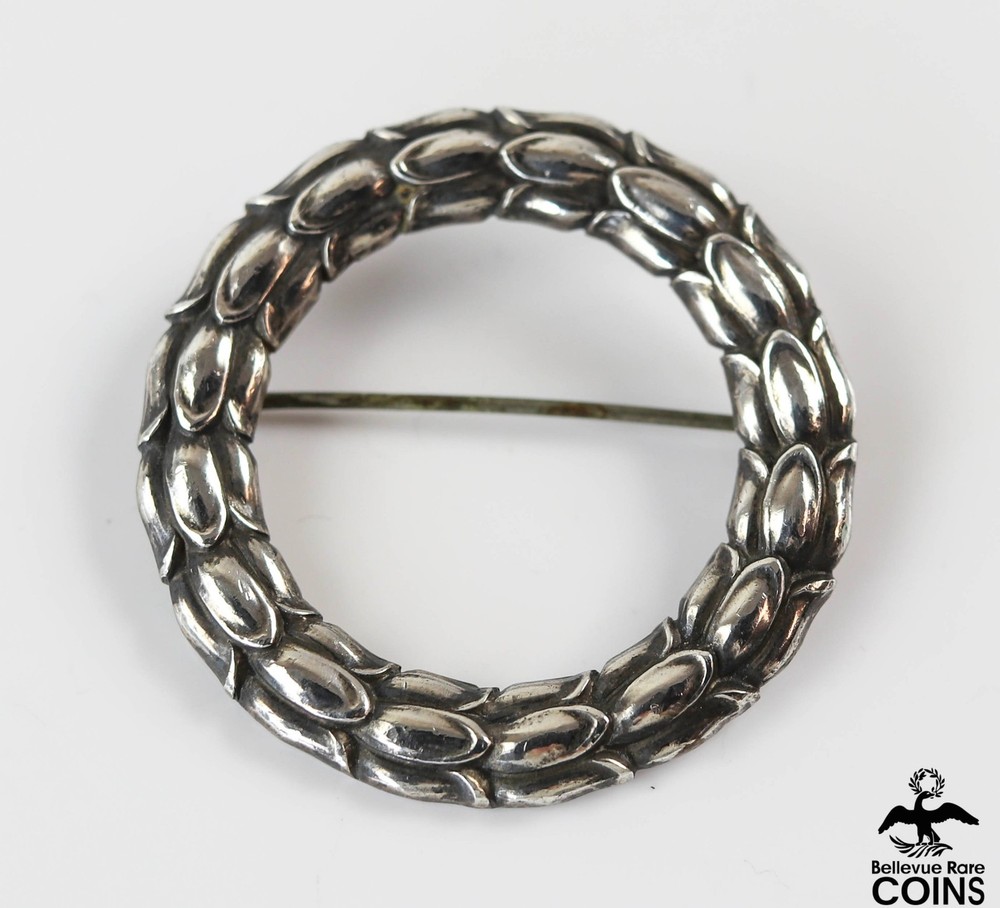 Georg Jensen Denmark Sigvard Bernadotte Sterling Silver #301 Tulip Wreath Brooch Georg Jensen Denmark Sigvard Bernadotte Sterling Silver #301 Tulip Wreath Brooch *Specifications Metal: Sterling .925 Silver Weight: 137.4 grams Length: 9" *Please SEE PHOTOS for condition. If you should have any questions or concerns, please feel free to message us Monday - Friday 9:00am - 5:00pm via ebay’s “Ask question” button below. We add hundreds of new coin and bullion listings weekly. We encourage you to check out our other listings and our eBay auctions! Click Here To See All Bellevue Rare Coins Gold Bullion L istings Shipping & Returns: $5.00 USPS Ground Advantage shipping within the United States, unless otherwise noted in listing. Shipping and Handling: Domestic Shipments - Bellevue Rare Coins provides $5.00 United States Postal Service (USPS) Ground Advantage shipping with tracking for all shipments within the United States, unless otherwise specified. International Shipments - All International orders are shipped via eBay's International shipping program. International Shipping and handling fees will be determined at check out. Please contact us for shipment fee estimates. Combined Shipping - Bellevue Rare Coins offers combined shipping for domestic buyers who have won multiple auctions. We will send out updated invoices with discounted shipping costs on Monday mornings. Please wait until you receive the updated invoice from us to make your payment. We do not offer combined shipping for International Buyers. Return Policy - Bellevue Rare Coins has a 30-calendar day return policy. All returns must be shipped within 30 calendar days of receiving the product. All returned items must be in their original packaging. All return requests must be made within 30 calendar days of customer receiving the merchandise. When returning merchandise, please include the item number, as this will expedite the refund process. Bullion Returns - Customer may (at Bellevue Rare Coins' discretion) be required to pay for any market loss on their returns. Any market gain on refunds shall remain the property of Bellevue Rare Coins. Listing Information: Product Photography - Bellevue Rare Coins does not use stock photos. Items in our listings have been photographed by our team in-house, so you can trust that you're making an informed purchase, ensuring transparency and authenticity. Messages - We greatly value your messages and are committed to responding to your questions and inquiries as promptly as we can. Nevertheless, please understand that immediate responses may not always be possible. Kindly note that we are unable to respond to messages on weekends, but we assure you that your inquiries are important to us, and we will get back to you during our working hours as soon as possible. About Bellevue Rare Coins Bellevue Rare Coins is a family-owned and operated business who have been proudly offering their services since 1979. We are the leading rare coin and currency dealer in the Greater Seattle Area who also specialize in jewelry and estate items. We are focused on delivering a simpler experience to our customers. Providing a reputation that dramatically affects our consumers in a positive way. We ensure that our clients always feel welcome and valued.