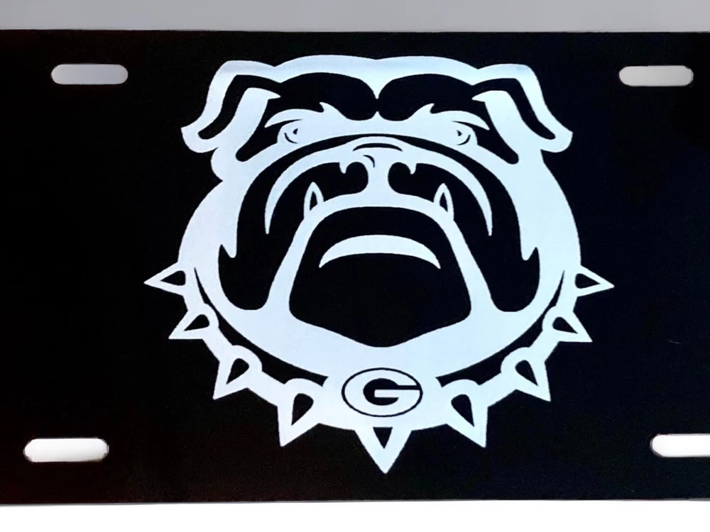 Show off your love for the Georgia Bulldogs with this beautiful laser engraved license plate. Made of durable aluminum and metal material, this matte black car tag is designed to fit easily on the front of your vehicle with its screw-on attachment type. Its universal fitment makes it suitable for any car and its road legal features ensure that you can proudly display it on the road. The plate is adorned with the iconic Georgia Bulldogs logo and is themed around sports teams. Measuring 12 inches in length and 6 inches in height, it is the perfect gift for any Bulldogs fan. So why wait? Get this high-quality license plate today and show your support for your favorite team wherever you go.