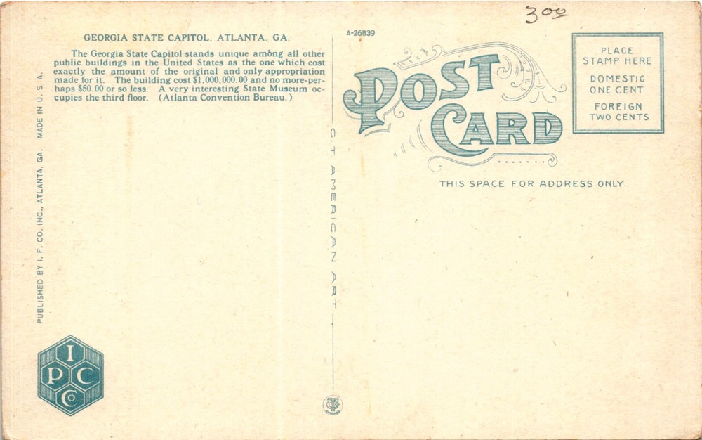 The Georgia State Capitol in Atlanta, Georgia, is a unique public building in the United States for having been constructed exactly within the original budget of $1,000,000. The building's cost did not exceed this amount by more than $50. The Capitol houses a State Museum on its third floor, adding to its historical and cultural significance.