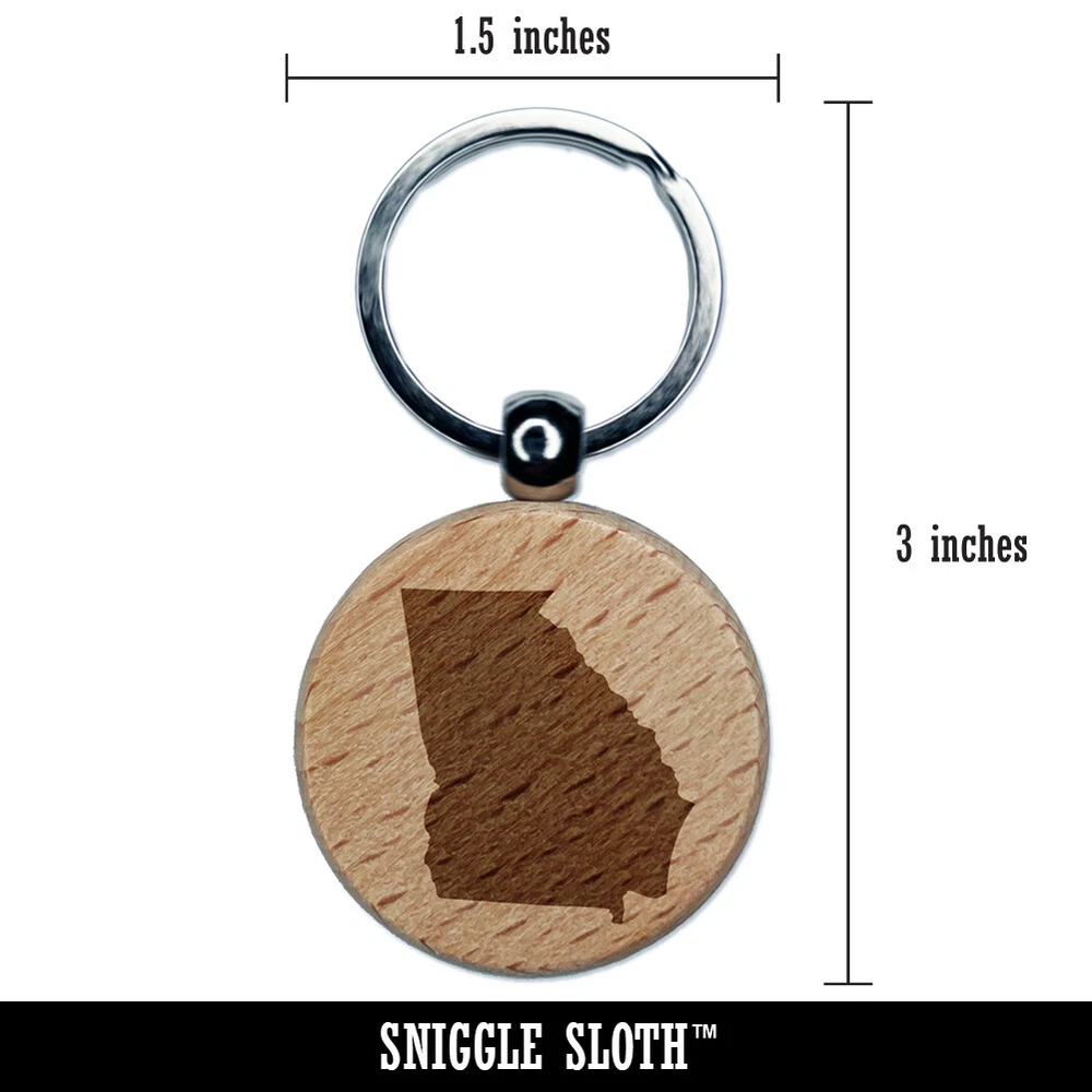 Georgia State Silhouette Engraved Wood Round Keychain Tag Charm