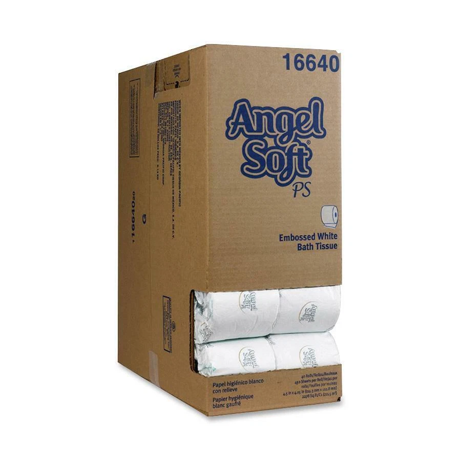 Georgia-pacific Angel Soft Ps Bath Tissue - 2 Ply - 450 Sheets/roll - 18000 / Carton - 4.05" X 4.50" - White (GEP16640) Georgia-pacific Angel Soft Ps Bath Tissue - 2 Ply - 450 Sheets/roll - 18000 / Carton - 4.05" X 4.50" - White (GEP16640) International Customers: All electronic products are packaged for sale in the US with US voltage. Additional Information: Consumer Brand Recognition: Your customers know Angel Soft; 85% of households nationwide recognize this retail brand Clean, Upscale Package Design: Coordinates with facial tissue boxes for an elegant, professional look<./p> Premium 2-Ply 450 Sheet Count: High-capacity, 450-sheet count saves time changing rolls, reducing labor costs Upscale Emboss: Engineered to help make a positive impression with your customers Innovative Dispenser Pack Case Design Makes dispensing product a breeze Assembly Required: No Post-consumer-waste%: 0% Recycled: No Product Description This item is brand-new, factory sealed. Premium two-ply bath tissue delivers the appearance and softness of at-home tissue for today's discerning business customers and employees. Each roll offers 450 sheets. Each sheet measures 4-1/2" x 4". Specification Physical Characteristics Weight (Approximate) 15 lb Product Color White General Information Brand Name Georgia-Pacific Marketing Information Premium two-ply bath tissue delivers the appearance and softness of at-home tissue for today's discerning business customers and employees. Each roll offers 450 sheets. Each sheet measures 4-1/2" x 4". Product Type Bathroom Tissue Product Name Angel Soft ps Bath Tissue Manufacturer Georgia Pacific Corp. Manufacturer Part Number 16640 Product Line Angel Soft ps Packaged Quantity 18000 / Carton Title Product Title Georgia-Pacific Angel Soft ps Bath Tissue (GEP16640) Product Information Number of Plys 2 Full Size 4.05" x 4.50" Sheets Per Roll 450 Shipping Most orders placed prior to 11AM PST ship same business day Some lightweight items ship Postal and can be shipped to a PO BOX. Most other orders will ship via UPS or FedEx. Please note we cannot ship UPS or FedEx to PO Box addresses. Expedited orders will ship 2nd Day Air Returns This item is eligible for return within 30 days of delivery. Opened items must be in re-sellable condition including original packaging and all accessories. Please visit our Returns Page for more information on Excluded Items, Damage Claims, and more details on requesting RA information. [ Read our full policy ] About Beach Audio Founded in August 2002, Beach Audio´s mission is to provide the best experience on the Internet for buying Consumer Electronics. We focus on making purchasing online a pleasant experience. We offer flat rate Ground shipping on all items less than 75 pounds that can be shipped via common carrier. Our sales office is located in beautiful town of Redondo Beach, California, just a few miles South of Los Angeles International Airport. We do not stock any inventory at our sales office. Instead, we ship from several warehouses located throughout the country. Our sophisticated fulfillment system will automatically ship from the warehouse location that is closest to your shipping address! Why are our prices so low? It´s simple. We have modeled our business much like a wholesaler. We sell in huge volume and have streamlined our operations to provide you with the best combination of price and service available anywhere. Hours of Operation 8AM - 5PM PST MON - THU, 8AM - NOON PST FRIDAY [ Read more ] Copyright© Beach Audio Inc, 2022