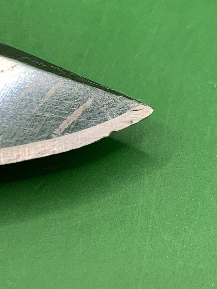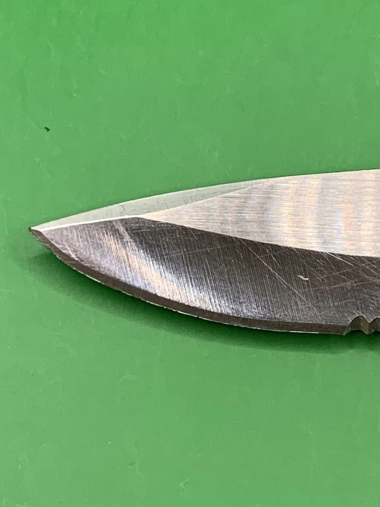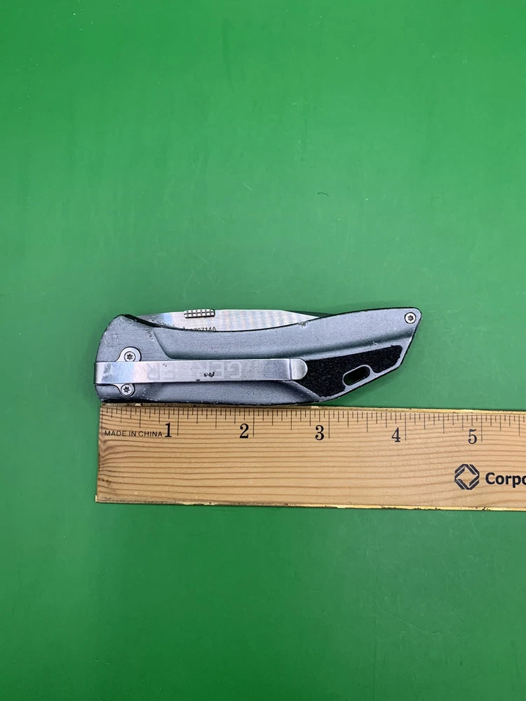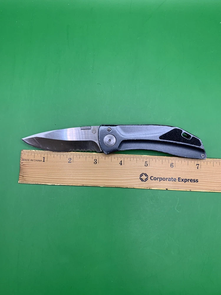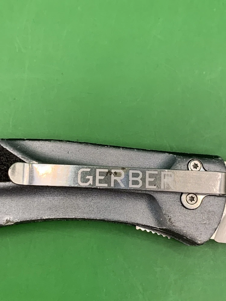 Used Gerber knife. Handle has some wear on the handle and the blade may need to be sharpened. There’s a very small knick near the tip of the blade. See pictures for overall cosmetic condition. By purchasing you affirm that you are of legal age and aware of all applicable laws.