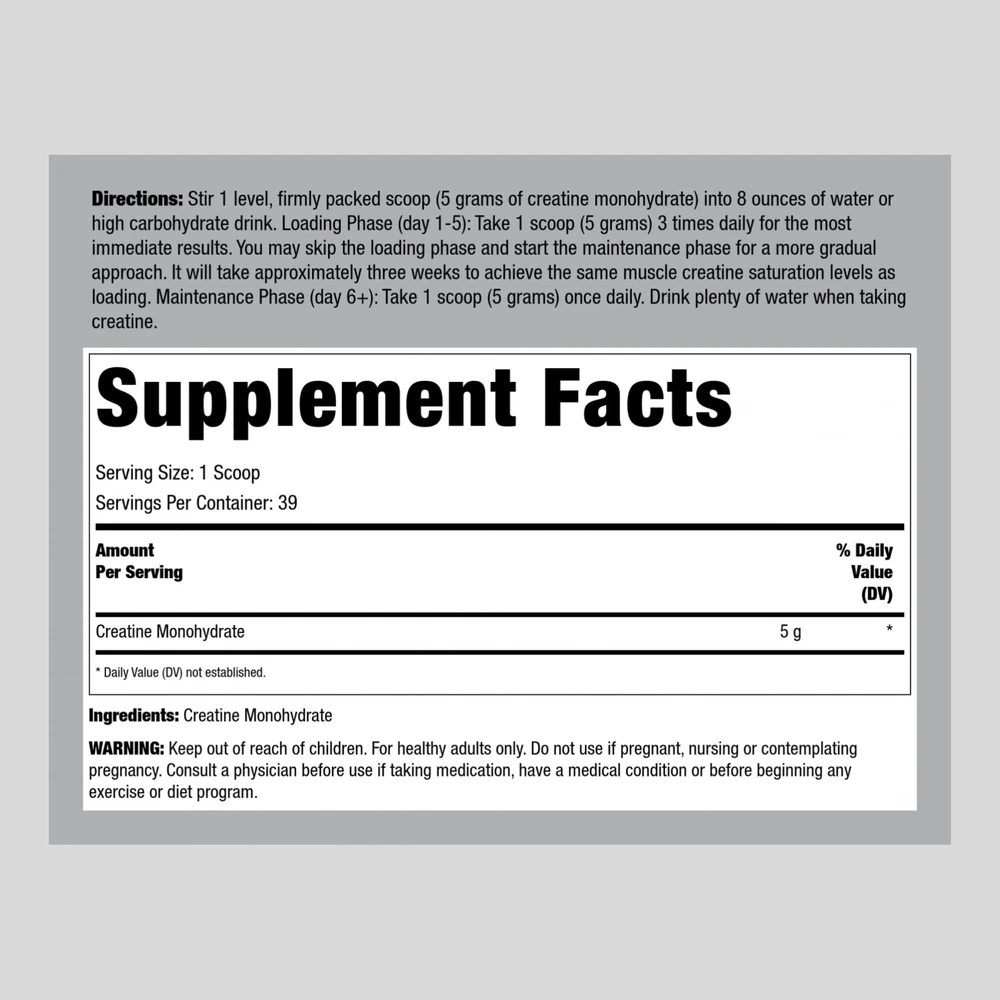 Creatine supplements are commonly used pre and post workout to support muscle performance in athletes. Weightlifters around the world have used Creatine for centuries to support demanding workouts. Creatine (creatine monohydrate) is a substance naturally occurring in the body and also found in animal foods like meat, fish and poultry. However, an additional source is often needed to a more demanding weightlifting regimen. Creatine Monohydrate can be found in many forms such as powders, , gummies, , and more. Now, you can enjoy our unflavored convenient with your favorite drink pre or post workout. Bodybuilders, fighters and athletes from all over have chosen Fitness Lab’s German Creatine because it is the most advanced formula in sports nutrition. We created German Creatine to deliver you the highest purity available of this compound. Our vegan formula is made with Creapure® —100% German Creatine,™ the most widely studied form of creatine in sports nutrition. It’s unflavored, unsweetened and laboratory tested to ensure the utmost purity & potency. Monohydrate is perfect for adding to shakes, delivering powerful nutrition for any fitness routine. It's non-GMO and gluten free, making it a top support for men and women everywhere! Superior quality nutrition at the best value Designed to support your healthy lifestyle goals HPLC Purity Tested Non-GMO and Gluten Free Laboratory Tested, using Trusted Ingredients