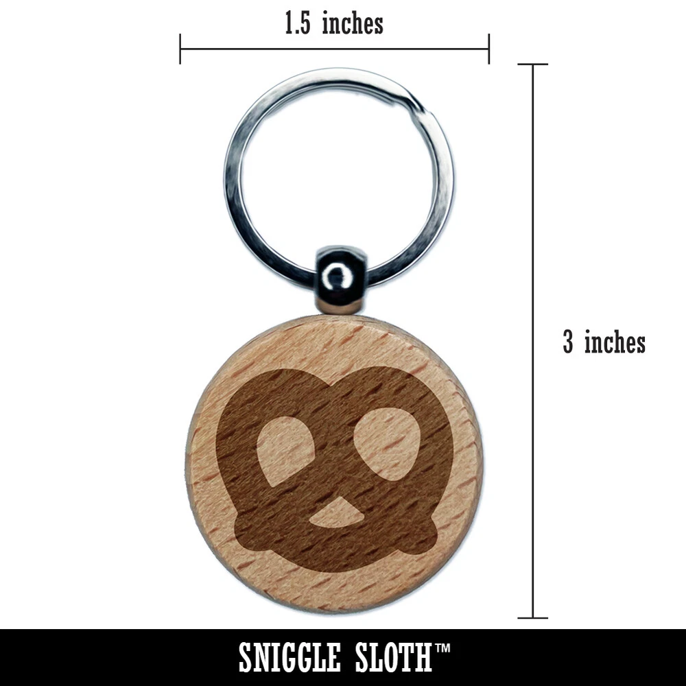 German Pretzel Solid Engraved Wood Round Keychain Tag Charm