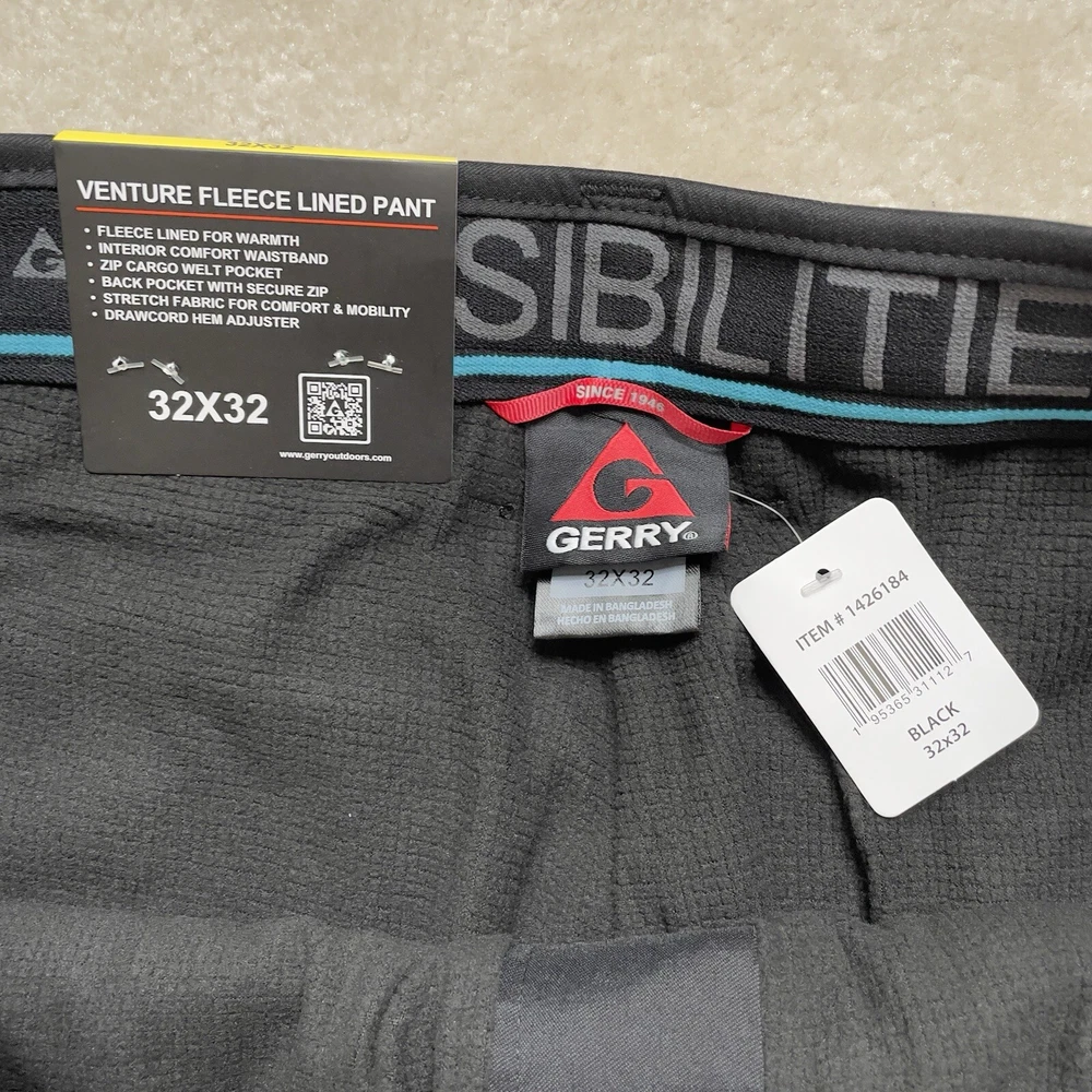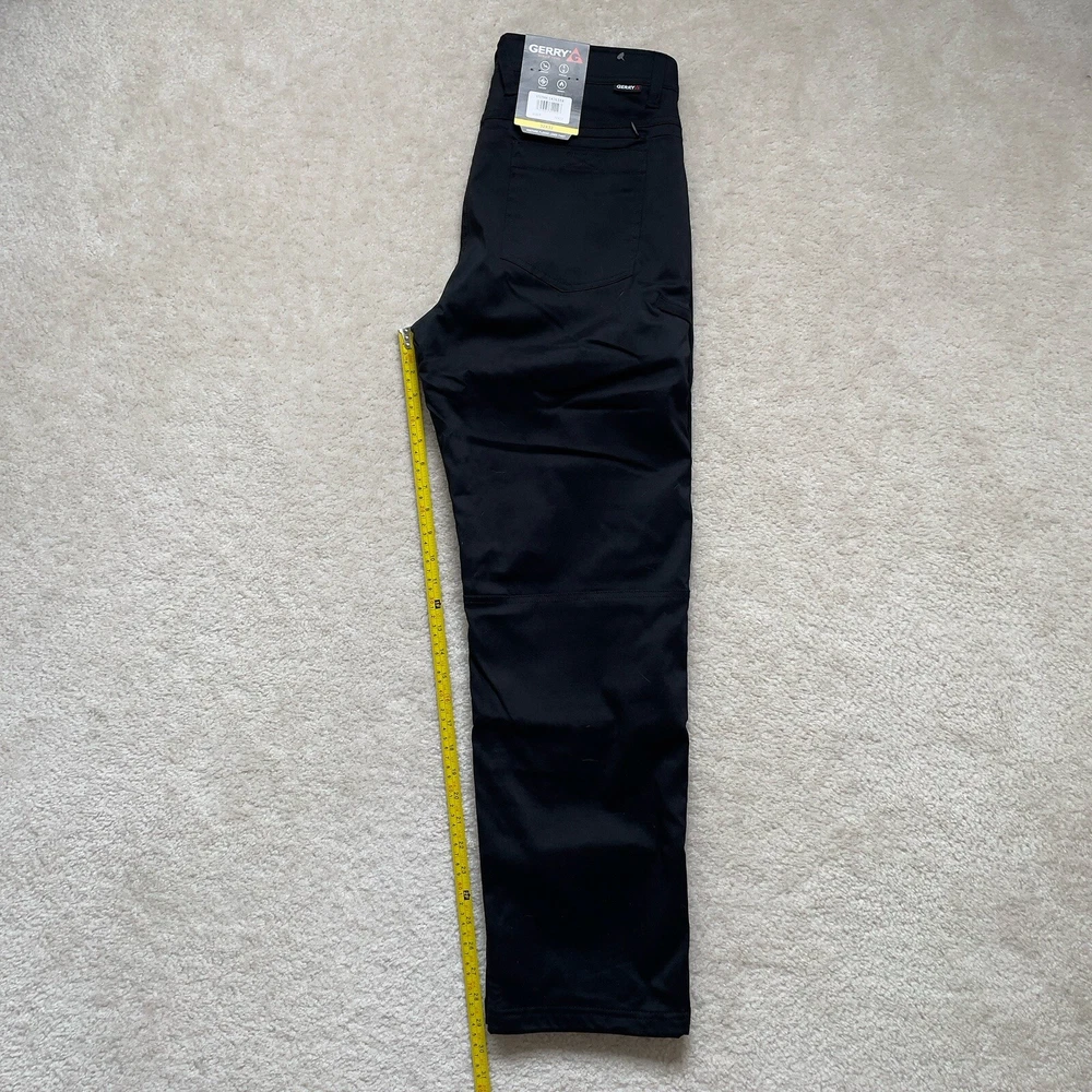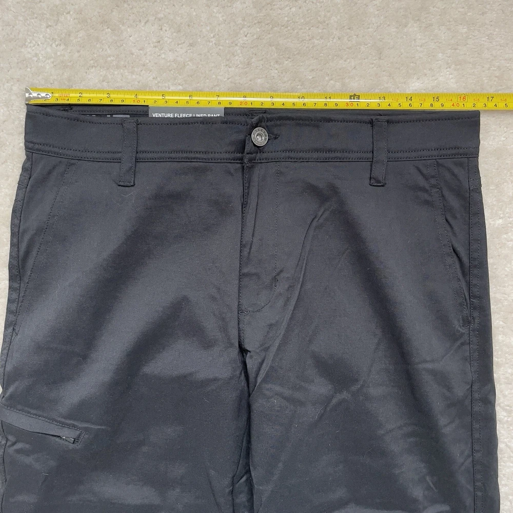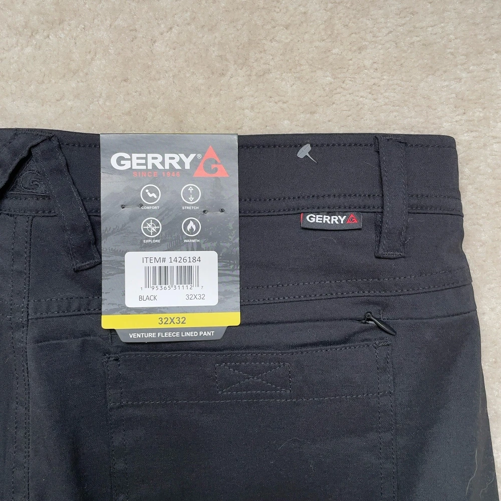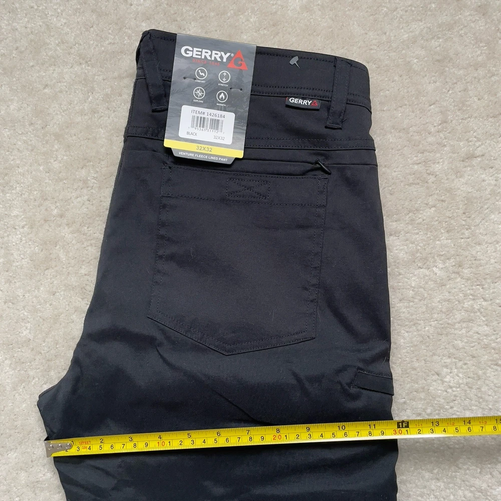 These Gerry men's venture fleece-lined pants in black are perfect for any occasion. The pants feature a zip and button closure, slash pockets, and a 29-inch inseam. They are made of a combination of nylon and spandex materials, making them stretchy and comfortable to wear. The pants are machine washable and easy to care for. The pants are ideal to stay warm and comfortable while looking stylish. The fleece lining provides warmth, while the stretchy material allows for a full range of motion. The pants are perfect for outdoor activities or just casual wear. **inseam measures shorter than tag states*** Please review photos for details, measurements and condition