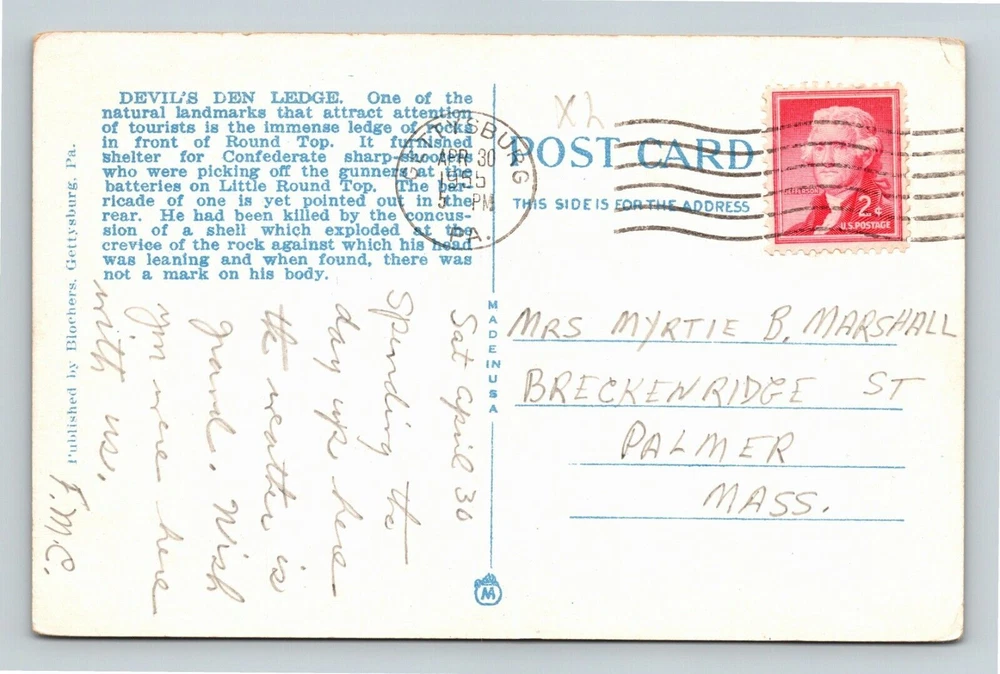 Gettysburg PA-Pennsylvania, Devil's Den Ledge Natural Landmark Vintage Postcard