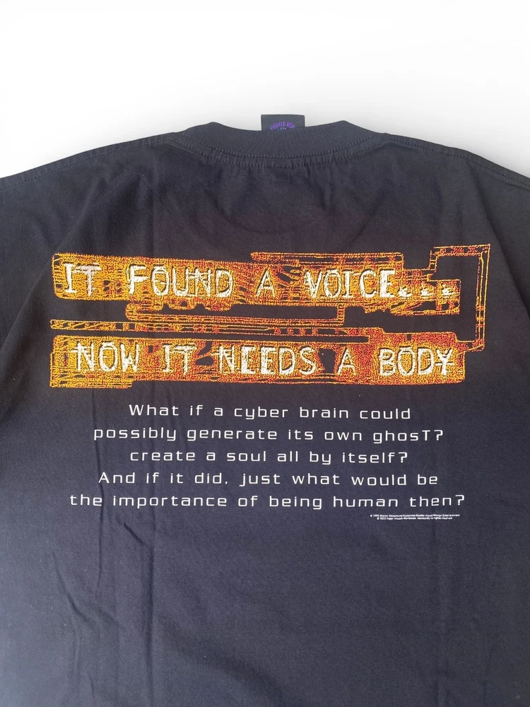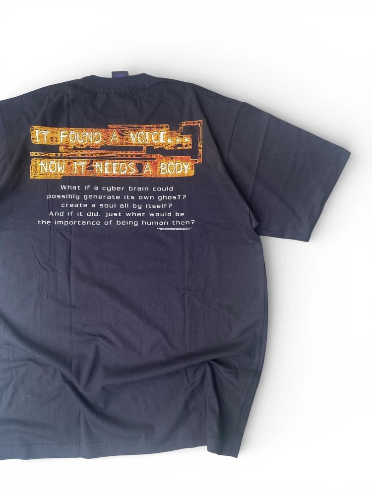 ⚠️ CYBERPUNK ANIME GRAPHIC TEE — GHOST IN THE SHELL AESTHETIC ⚠️ Please read carefully and check all photos before purchasing. This is a Ghost in the Shell graphic T-shirt featuring a full front illustration of a female cyborg character in a purple bodysuit, standing against a futuristic cityscape background. Strong cyberpunk visual with detailed line work and high-contrast colors. Back features a large text-based graphic with layered typography and a philosophical quote related to cyber brain and humanity, printed across the upper back. Front and back prints present. MEASUREMENTS: • Pit to pit: 22 inches • Length: 29.5 inches • Fit: Fits like L — regular to relaxed fit (Please rely on measurements) DETAILS: • Title / Franchise: Ghost in the Shell • Print: Front full graphic + back text graphic • Front Graphic: Cyborg character with cables and futuristic city background • Back Graphic Text: “IT FOUND A VOICE. NOW IT NEEDS A BODY” Followed by a multi-line quote about cyber brain, ghost, and humanity • Color: Black • Fabric: Cotton (exact blend not stated on tag) • Tag: Purple graphic tag (brand text visible on tag), size tag L • Construction: Short sleeve, crewneck • Style: Anime / cyberpunk / sci-fi • Production: Bootleg / fan-made (not official retail) CONDITION: 8/10 — Very good condition • No holes • No major stains visible • Fabric clean with light natural wrinkles • Prints intact and clear with minor wear consistent with use SHIPPING: • Standard International Shipping: +$20 • DHL Express: +$35 (Recommended) TERMS: • Please check measurements before buying • Ask any questions before purchasing • Reasonable offers accepted — lowball offers ignored • All sales are final • New items uploaded regularly TAGS: #GhostInTheShell #AnimeTee #Cyberpunk #BootlegTee #GraphicTee #SciFiAnime #JapaneseAnimation #RareTee #Streetwear #Grailed