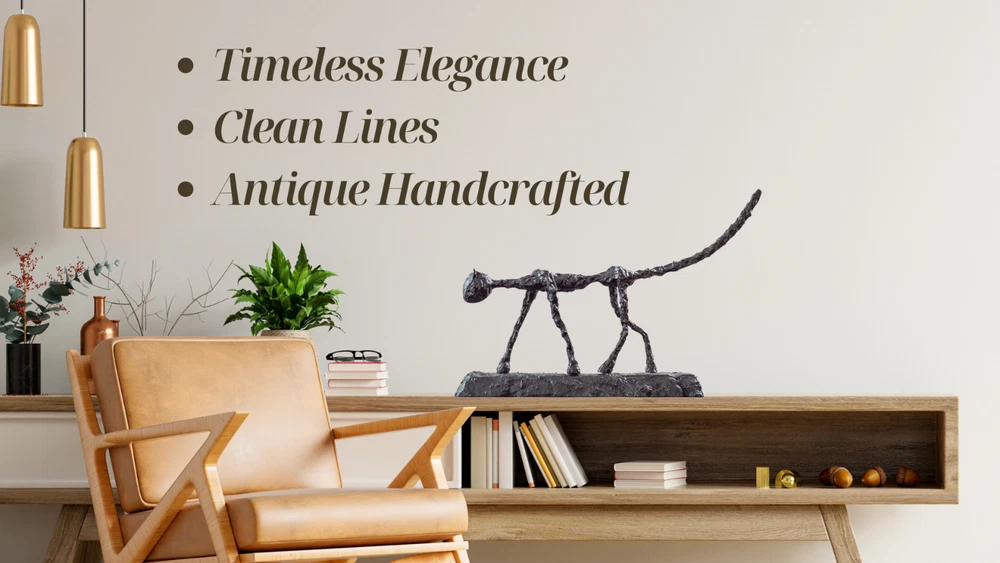 Store Categories Store Categories Famous Giacometti Dali Rodin Classical Cowboy The Thinker Dancing Self Made Man Goddess Lady Justice Aphrodite & Venus Diana Artemis Mermaid Mythic Atlas Saint Michael Religions Virgin Mary Jesus Animal Bull Horse Eagle Leopard Deer Elephant Lion Abstract Bronze Bust Metal Decor Resin Nude Art Bronze Other Famous Giacometti-Inspired Sculpture Bronze Cat Statue Antique Art Deco Style, Handmade Home Decor Product Description Add a touch of modern elegance to your space with this handcrafted abstract bronze cat statue, inspired by Alberto Giacometti's iconic style. Featuring sleek, elongated lines and an antique Art Deco finish, this unique sculpture is perfect for home decor, office accents, or as a statement art piece. Each statue is individually cast and polished, ensuring a high-quality, one-of-a-kind work of art. Feature: ✔ Giacometti-Inspired Design – Sleek, minimalist, and artistic. ✔ Handmade Bronze Craftsmanship – Durable & museum-quality finish. ✔ Timeless Art Deco Style – Fits modern, vintage, or eclectic decor. ✔ Unique Gift Choice – Perfect for cat lovers, art collectors, and design enthusiasts. ✔ Versatile Display – Great for shelves, desks, or gallery walls. Shipping Policy Returns Policy Shipping Policy Transport : By Air (DHL/FedEx) Shipping time: 1-3days Delivery time : 3-7days Pa cking : Wooden/Box with soft foam inside Returns Policy Copyright © 2023 Dianxiaomi